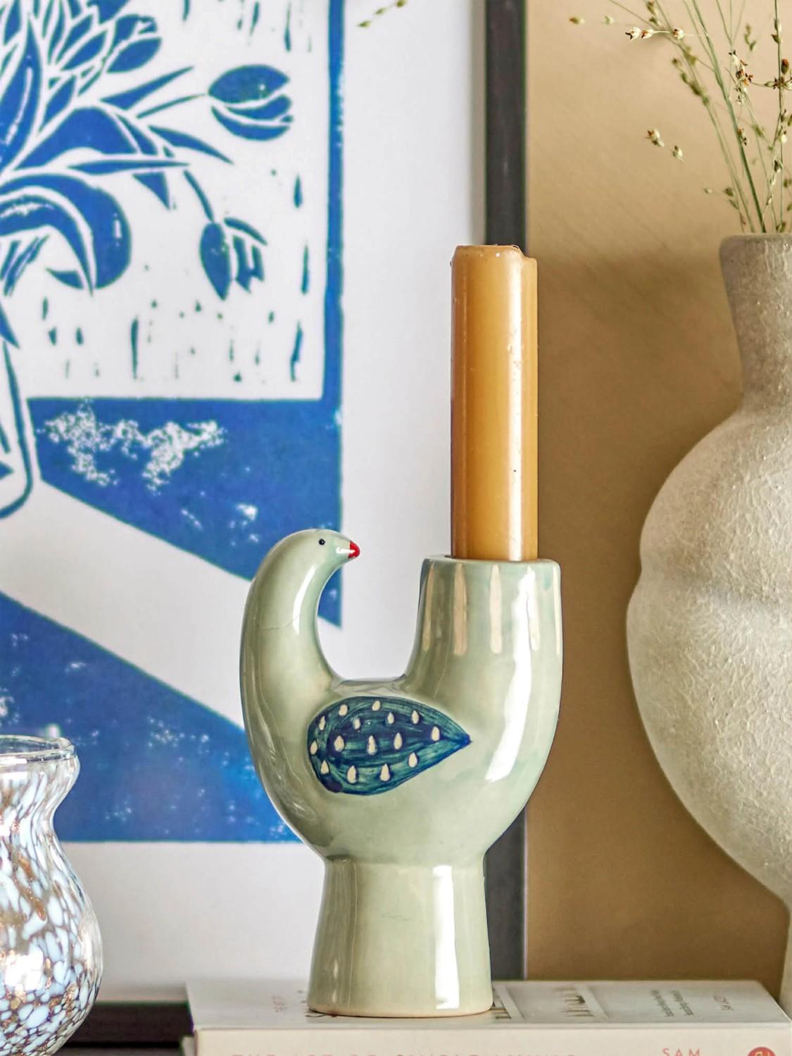 Gi hjemmet et sjarmerende og personlig preg med Trudy lysestake fra Bloomingville. Den dekorative lysestaken er formet som en fugl og har en vakker glasur i blå nyanser som skaper et mykt og levende uttrykk.