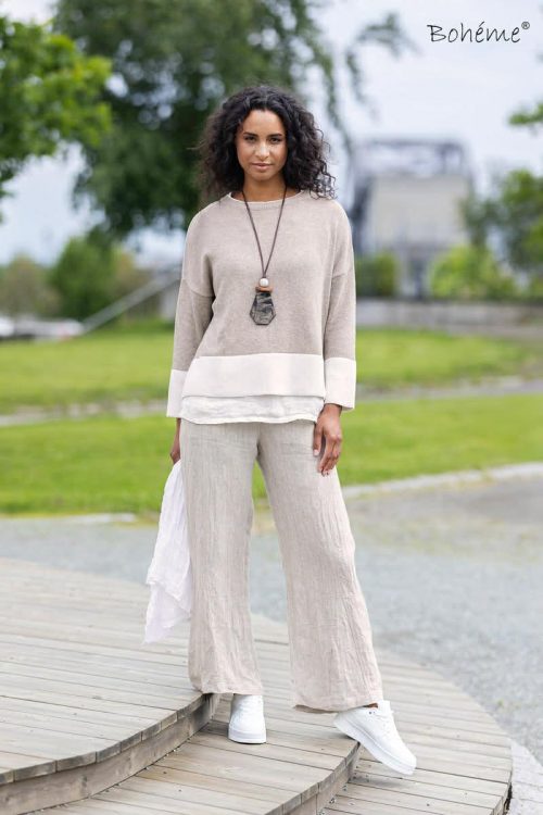 Tøff genser med offwhite stripe nederst på bol og erm som gjør det lille ekstra.