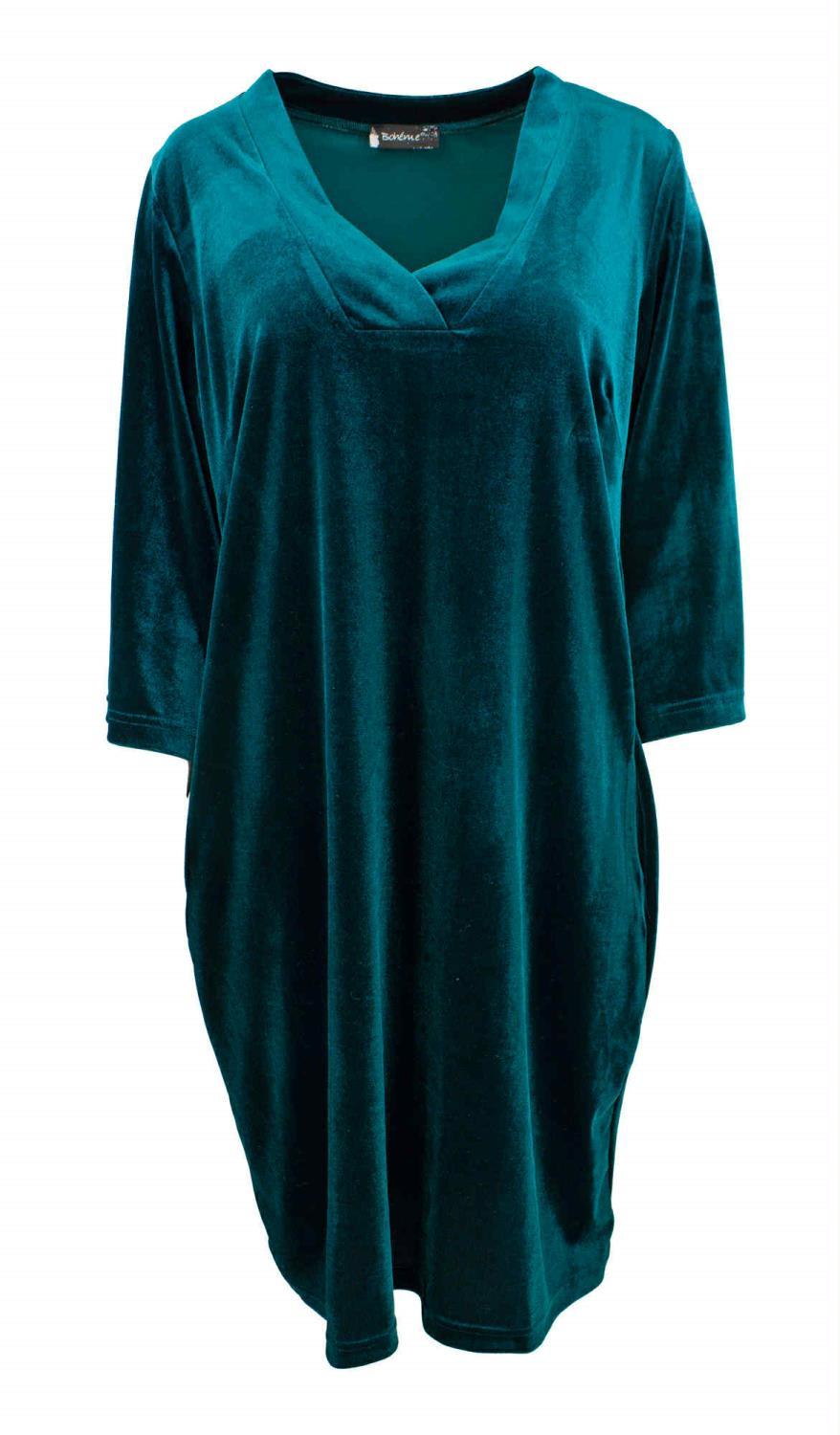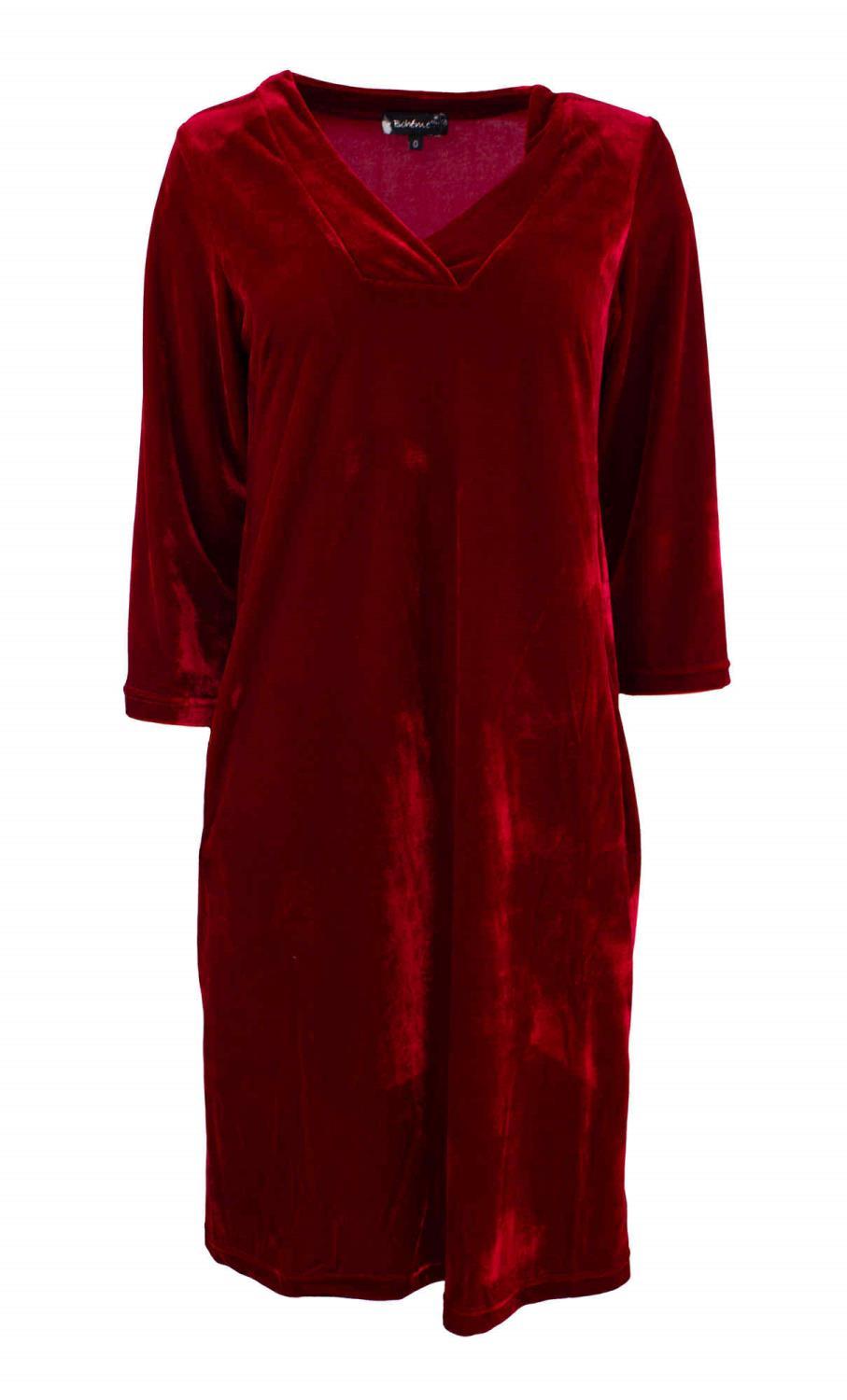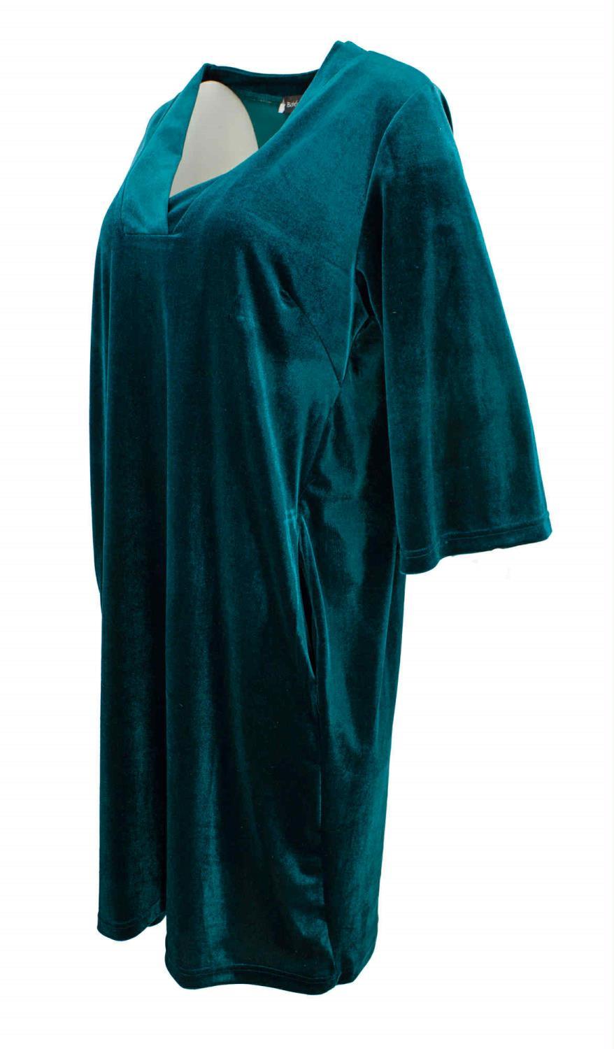 Nydelig kjole i deilig velour med V-hals, 3/4 ermer, lommer i siden.