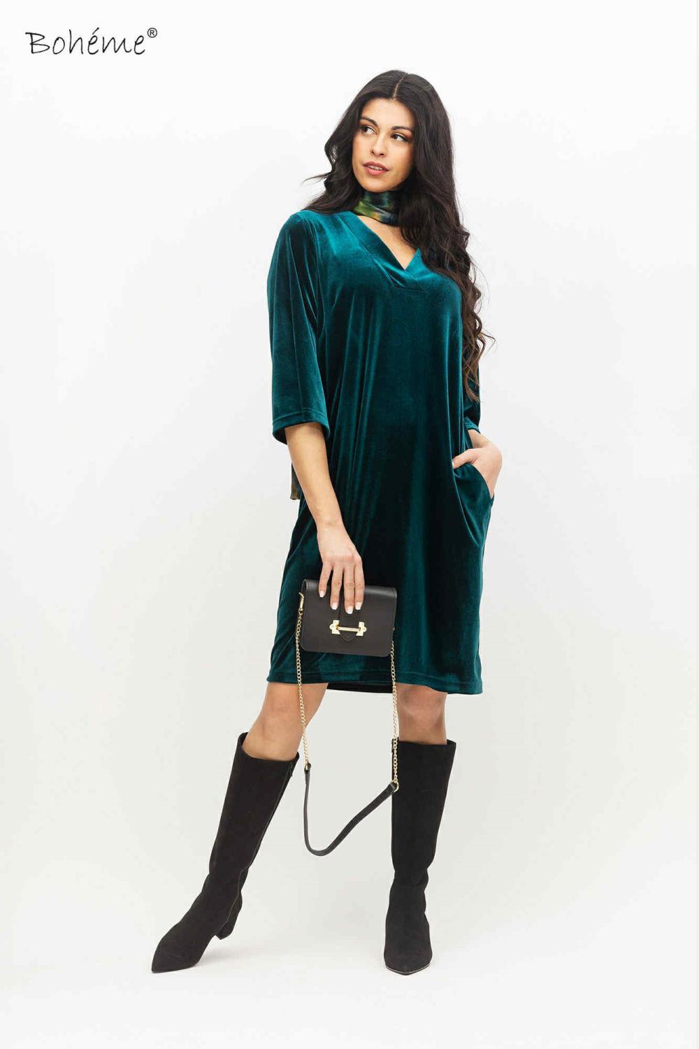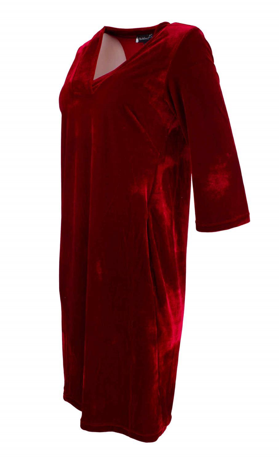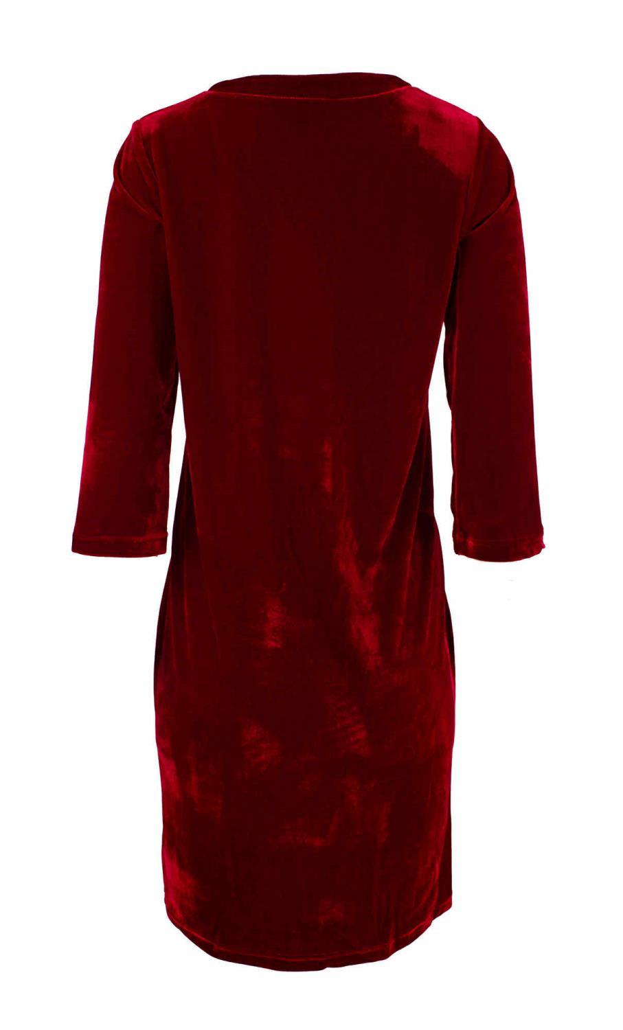 Nydelig kjole i deilig velour med V-hals, 3/4 ermer, lommer i siden.
