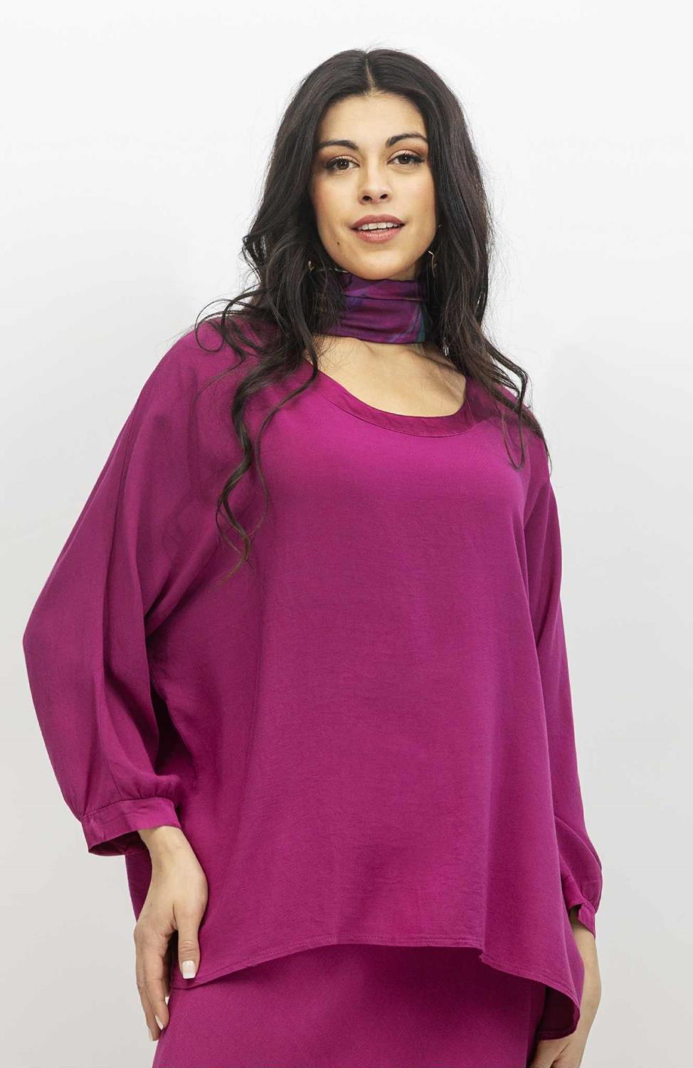 Lekker topp i en nydelig farge fra Boheme. Vid modell som passer til det meste. Blank halskant og kant på erme.