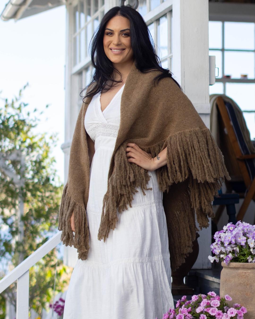 Daisy-sjalet er bestselgeren fra Dèhn. Norsk design. Stort og deilig sjal. Mykt og kløfritt. Strikket i en myk og lett blanding av alpakka og merionull med kvalitetsgarn fra Italia. Hver frynse er festet for hånd. Bruksområdene er mange og sjalet brukes til hverdags, fest, bryllup, dåp og 17. mai. Mange av fargene er designet slik at det kan brukes til mange bunader.