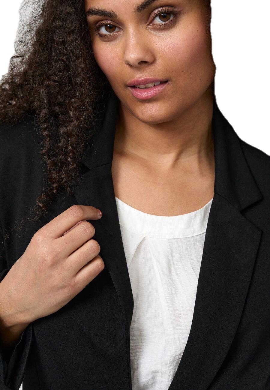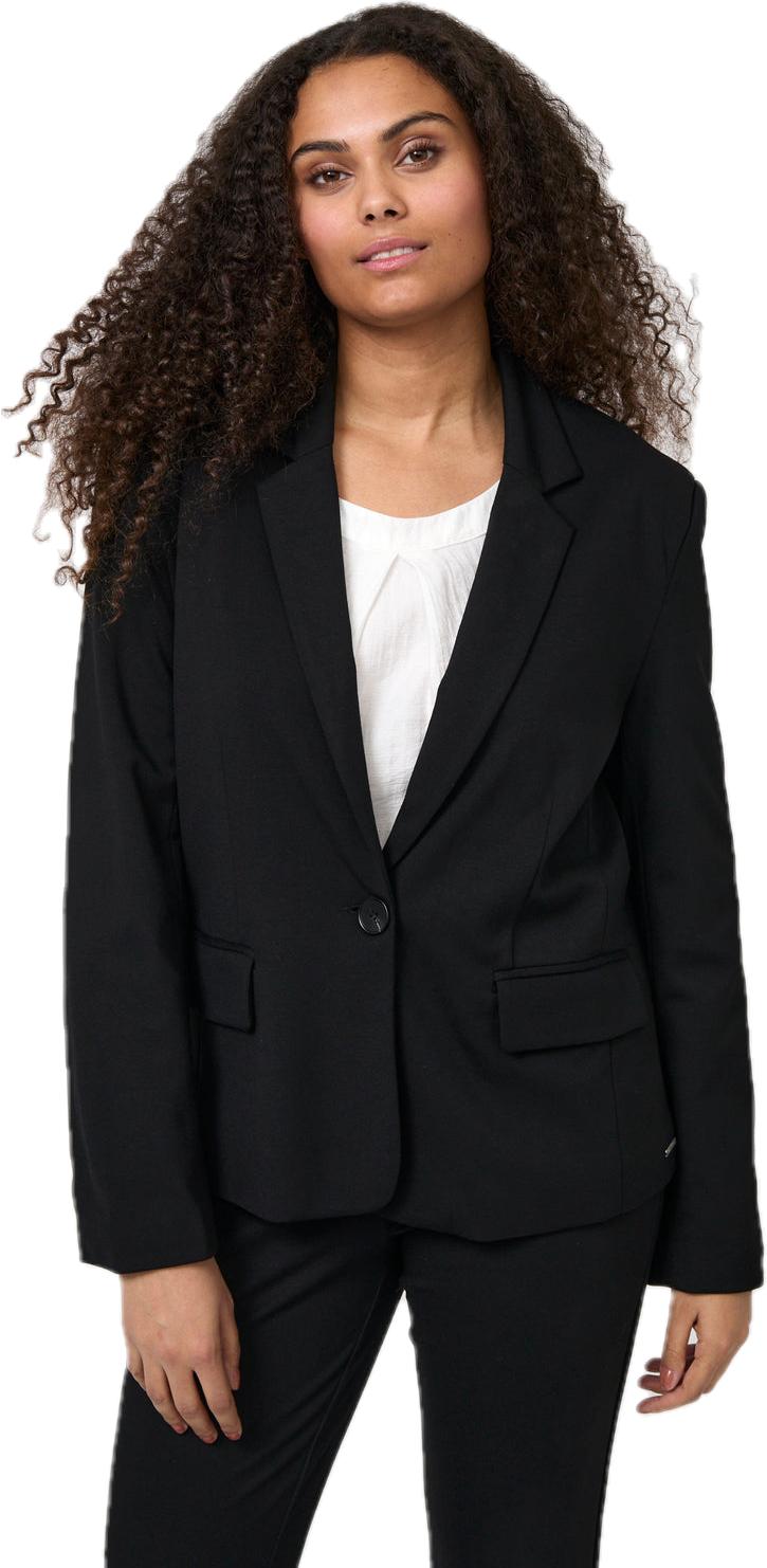 Feminin blazer med to lommer med klaff i front. Litt innsving. Myk og litt elastisk da det er elastan i den.