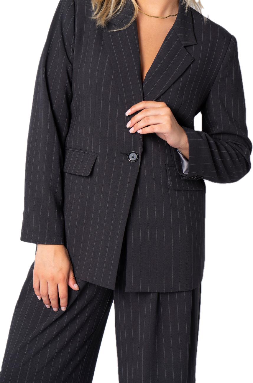 Kombiner den med de matchende bukser og en enkel top for et professionelt og stilfullt uttrykk.