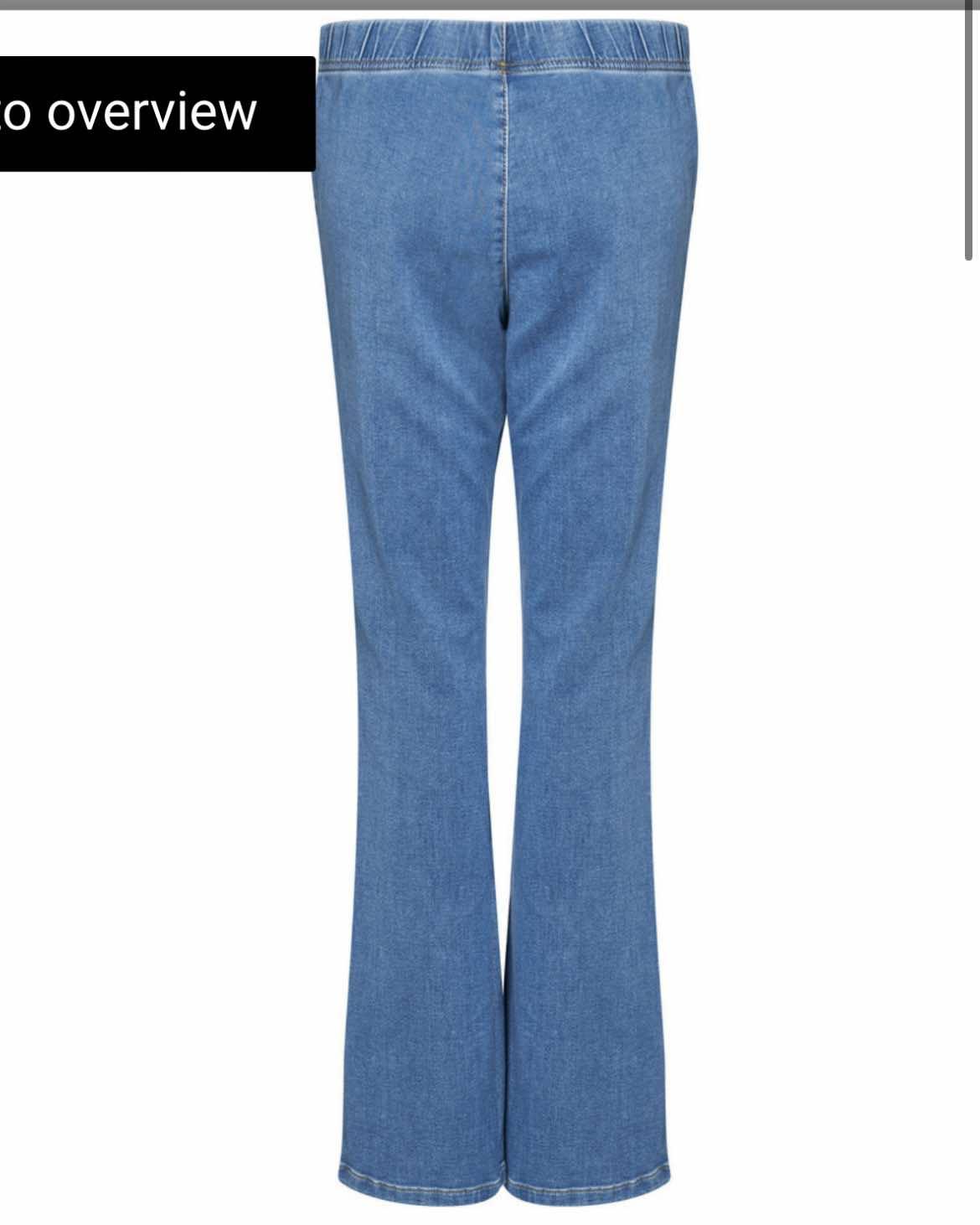 Buksa Ninne er en deilig og myk rett denimbukse med litt bootleg. Strikk i livet og lommer i siden.