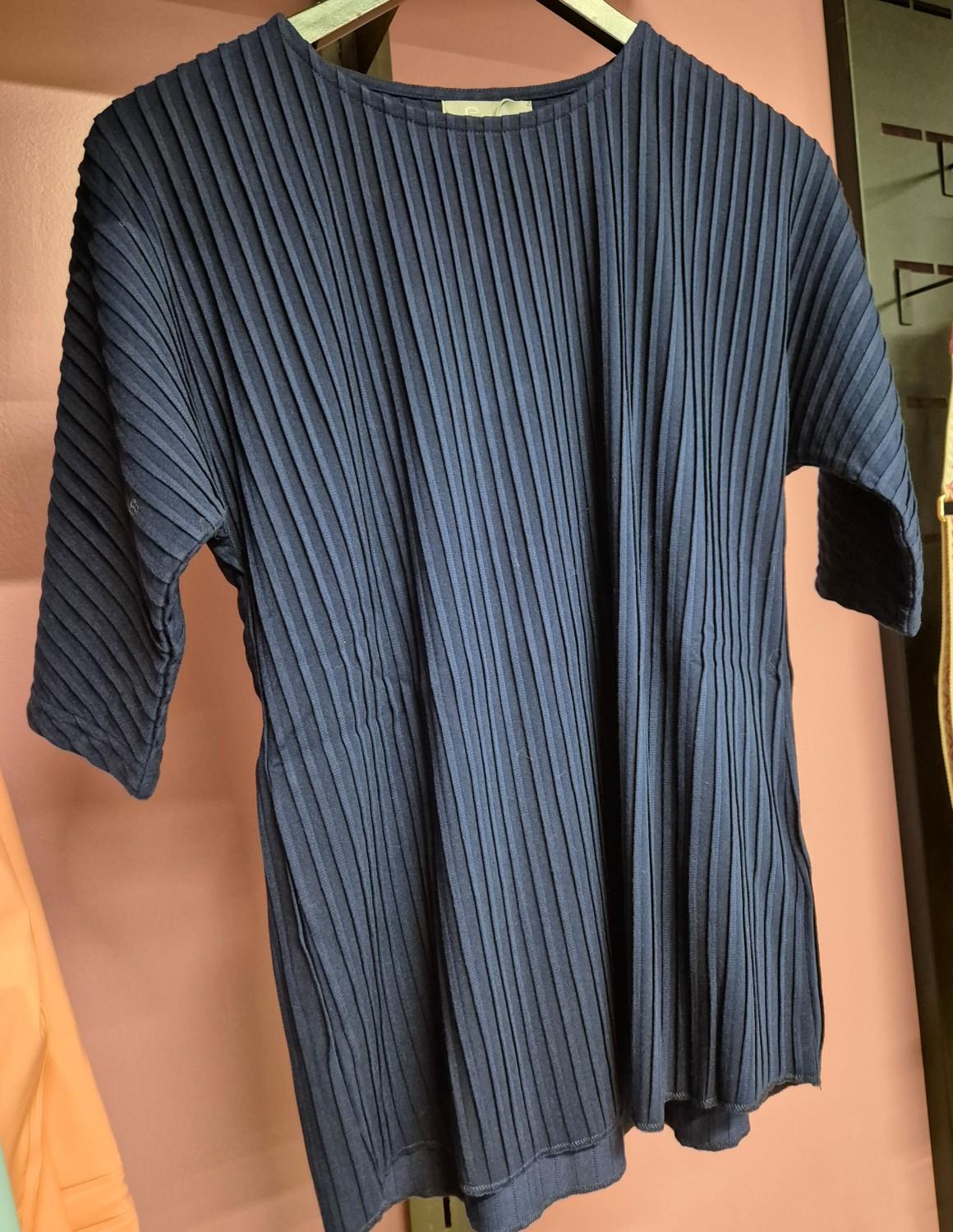 Myk, enkel topp med flate legg som gir en vertikal stripeeffekt. Erm til albuen. Passform – svak A-fasong. Lengde bak i str M – 64 cm