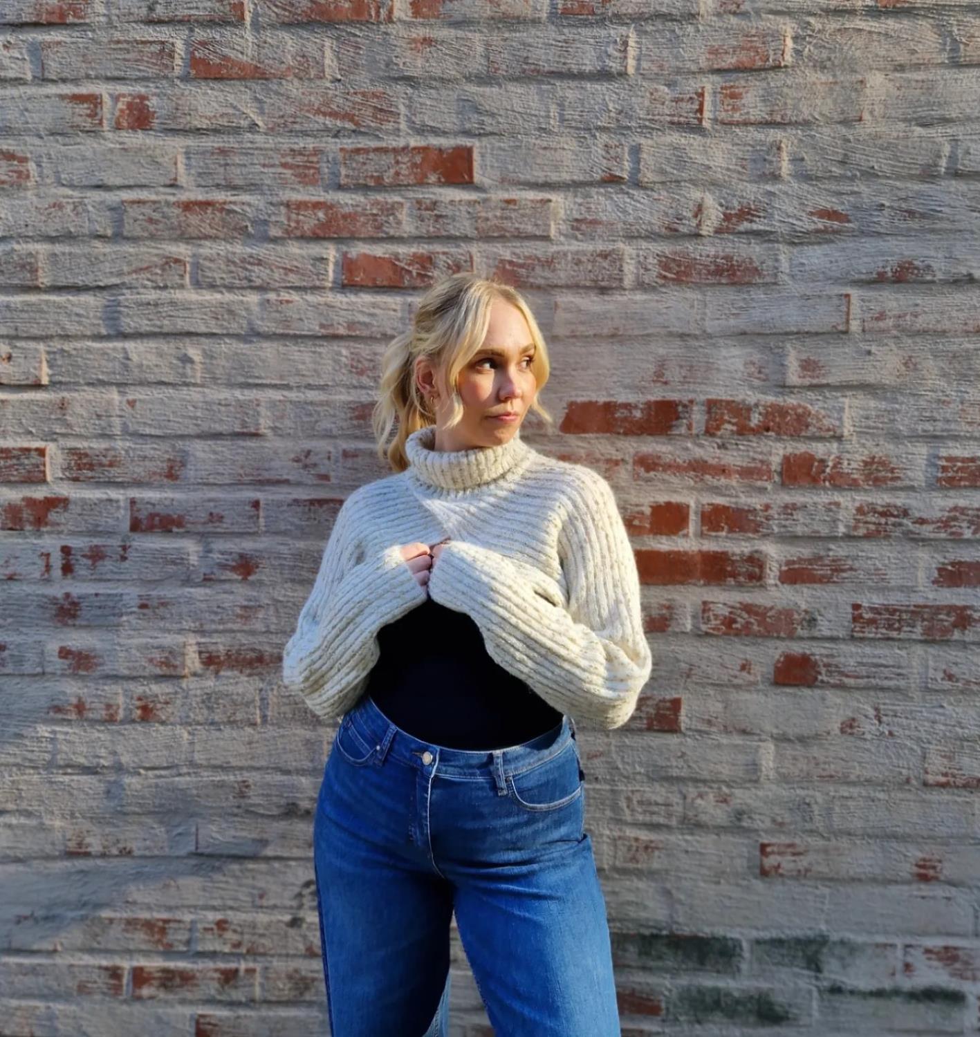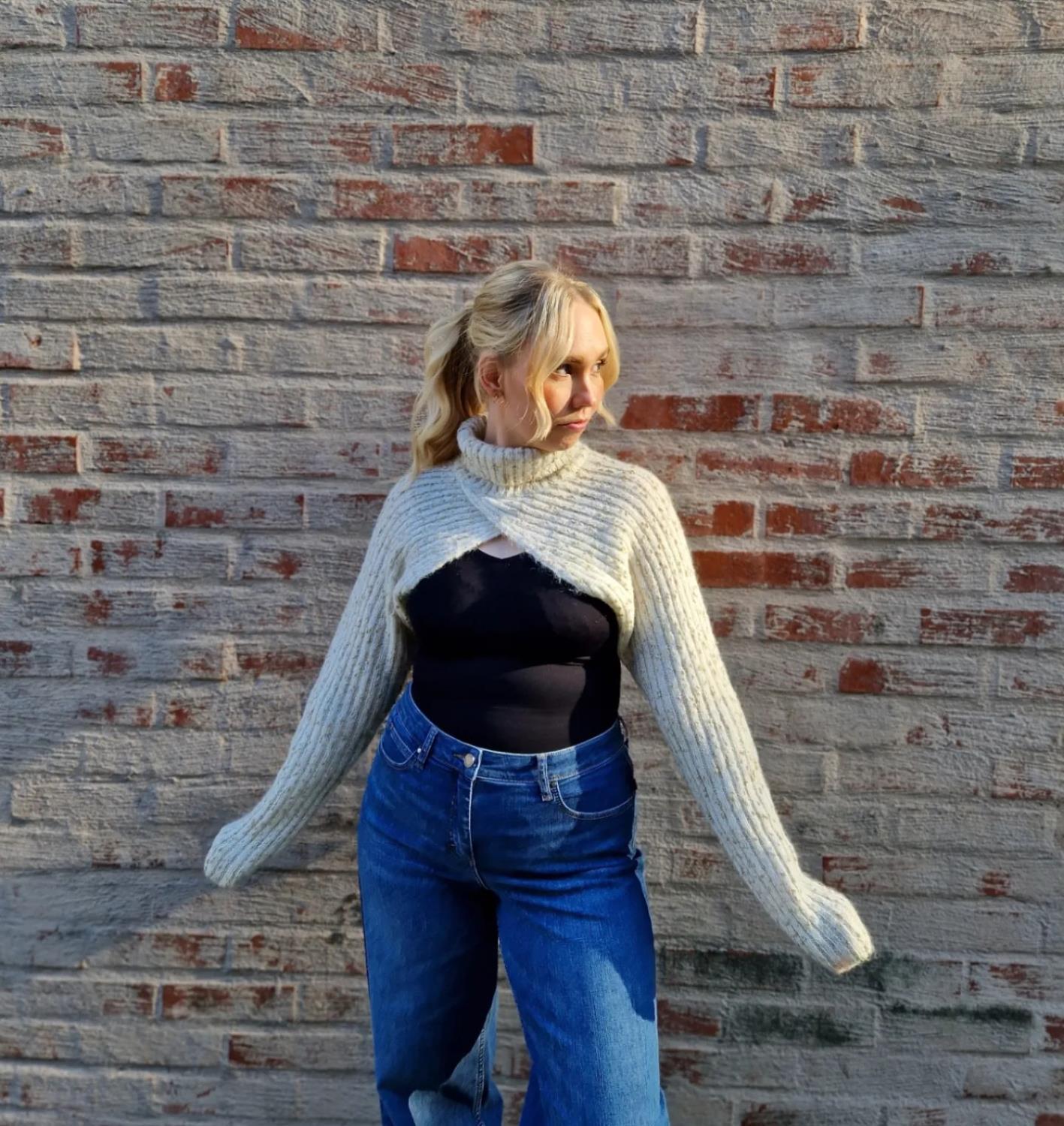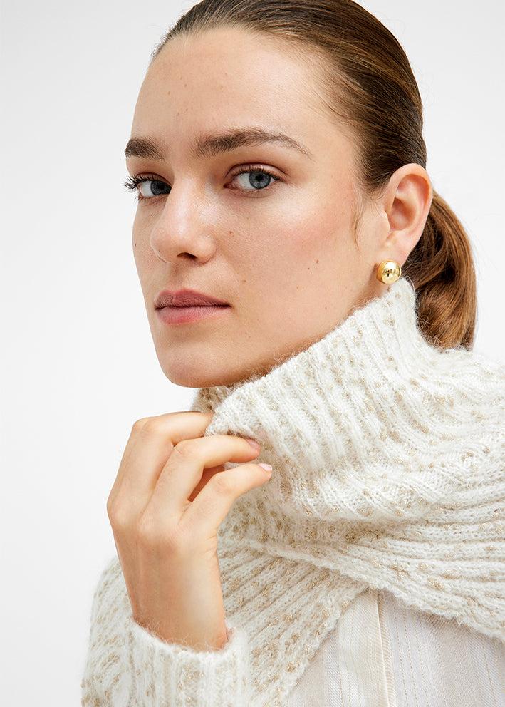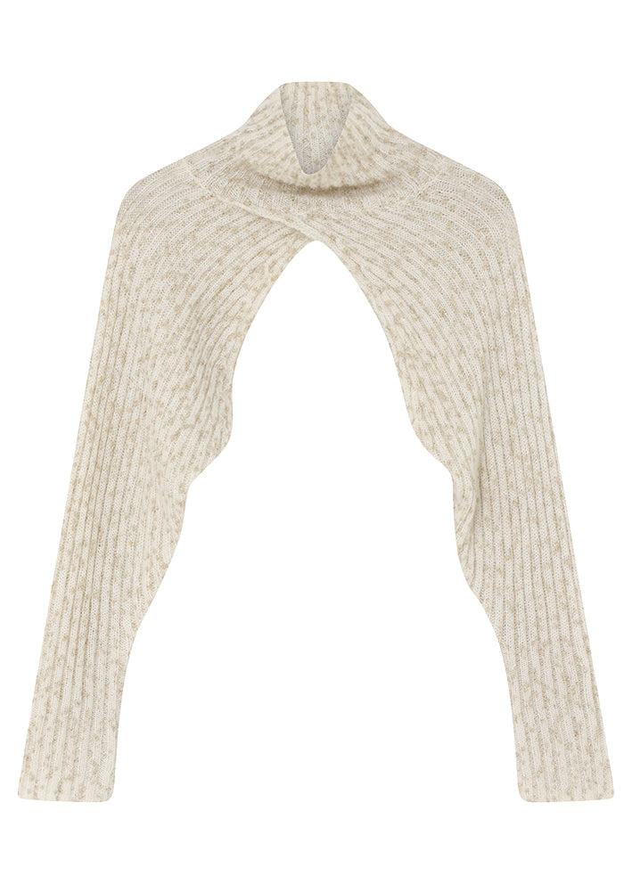 Lekker kremhvit/melert hals med lange ermer. Kan styles på mange ulike måter til hverdags og fest. Nydelig myk kvalitet med mohair og ull. Materiale: