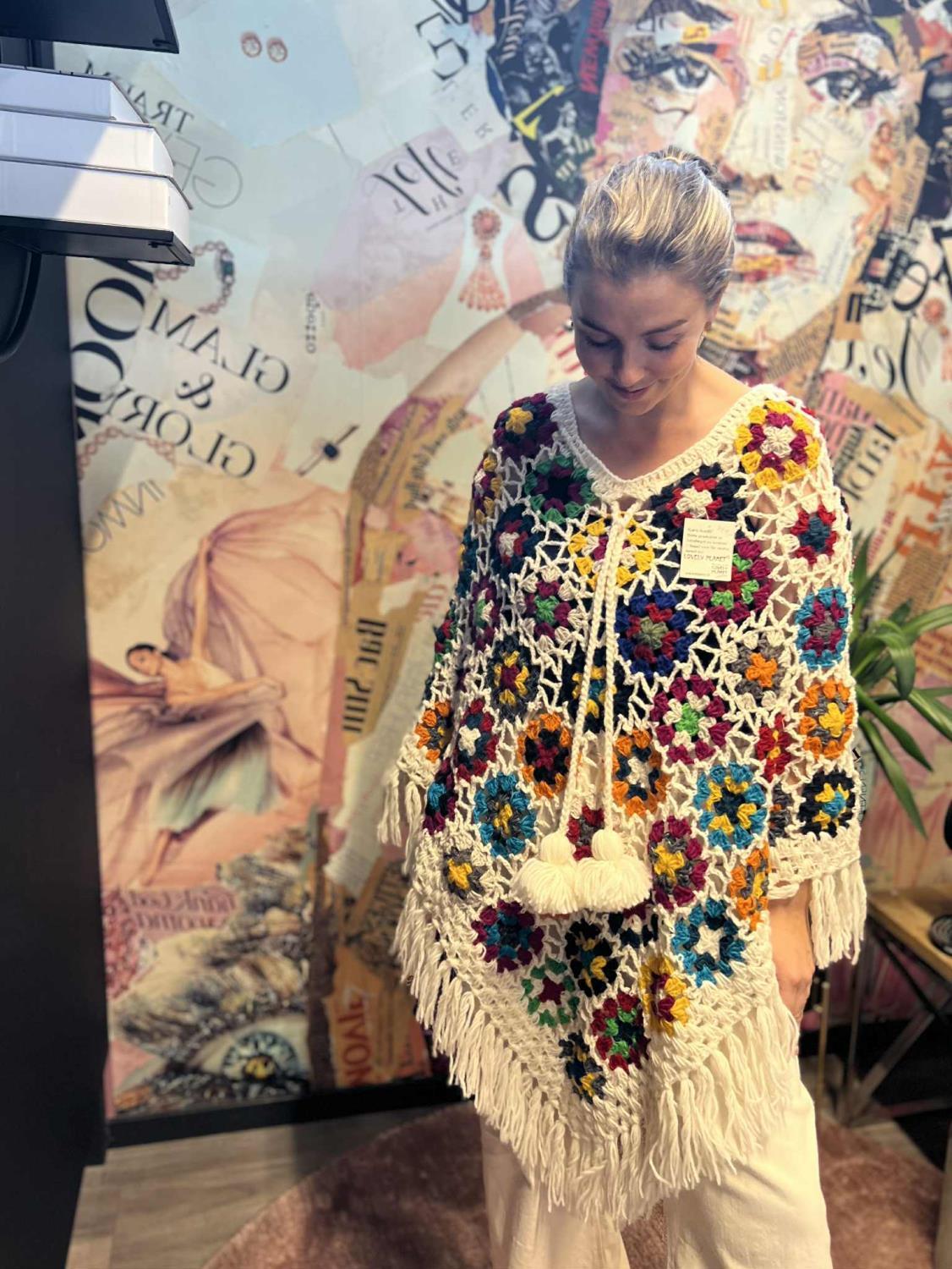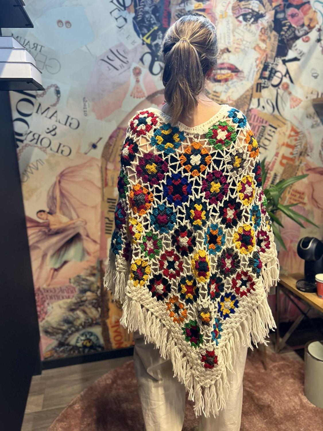 Sjekk denne lekre heklede ponchoen i 100 % ull fra Lovely Planet! Ponchoen er håndheklet i Nepal og er et fairetrade-produkt som sikrer arbeiderne en anstendig lønn og arbeidsforhold.