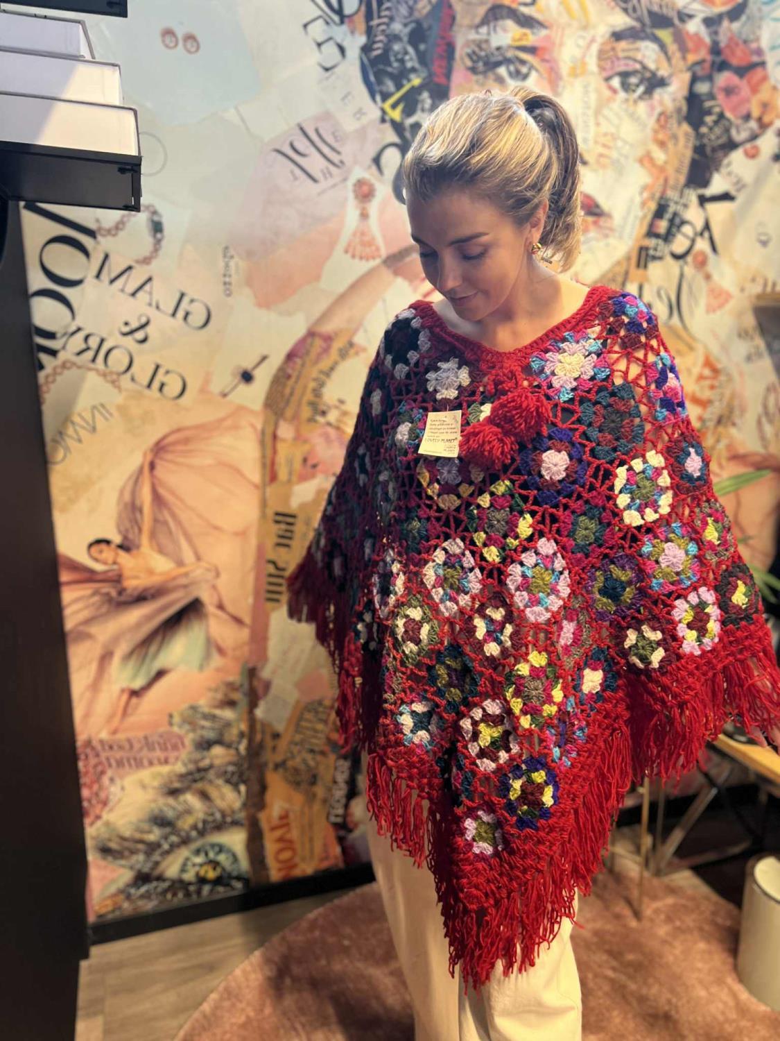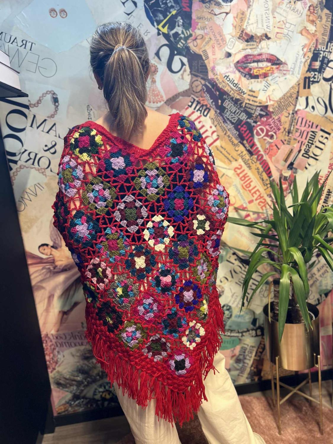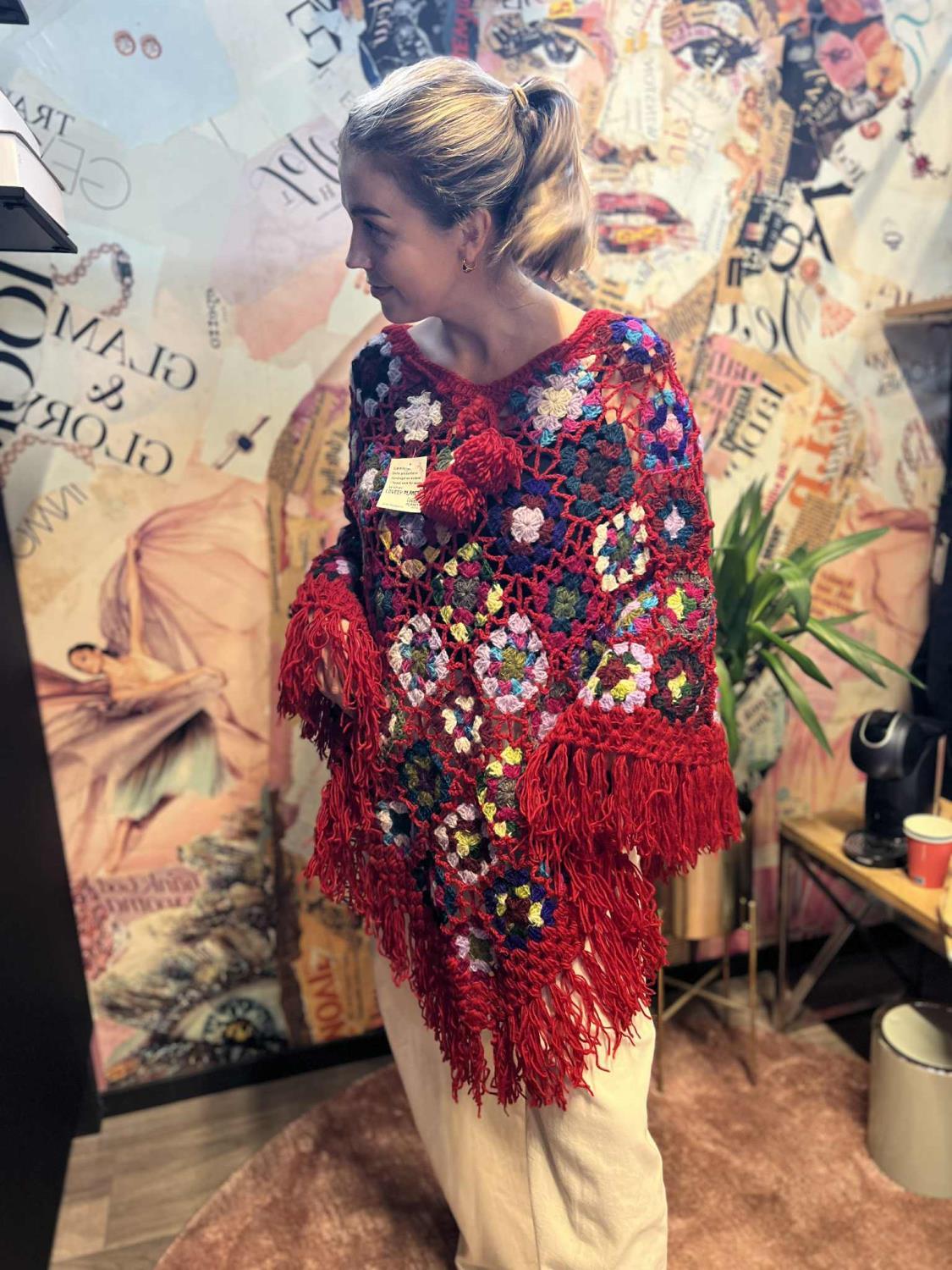 Bli den første til å omtale «Heklet poncho – rød multi»