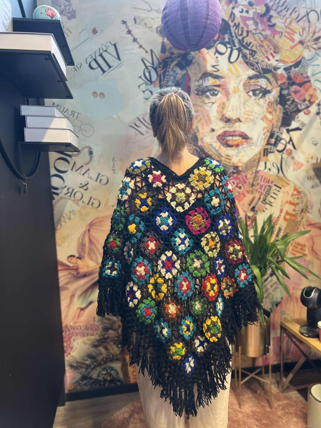 Sjekk denne lekre heklede ponchoen i 100 % ull fra Lovely Planet! Ponchoen er håndheklet i Nepal og er et fairetrade-produkt som sikrer arbeiderne en anstendig lønn og arbeidsforhold.