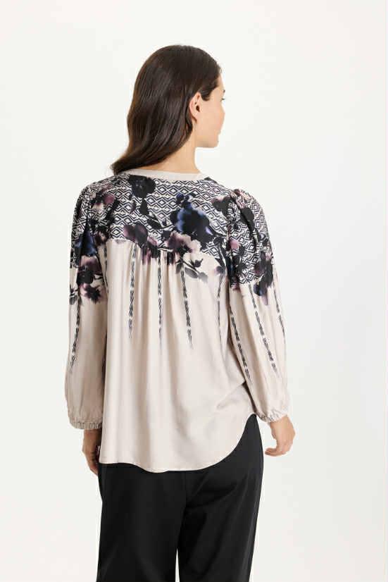 En feminin bluse som er fin og kombinere til skjørt eller bukser, styles både til hverdags og fest.