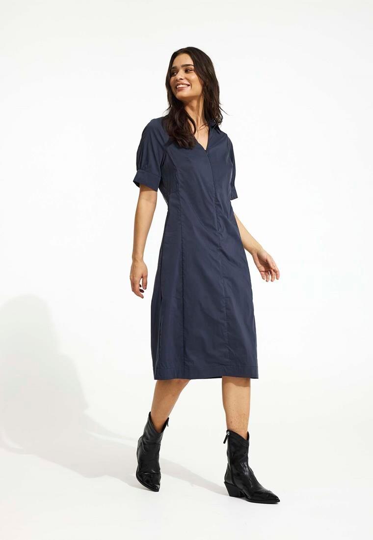 Sporty, klassisk kjole fra IN FRONT. Superfin kjole med V-hals og korte ermer med litt puff på skulderen. Kjolen lukkes med en skjult glidelås foran. Fin kjole til både hverdag og fest.