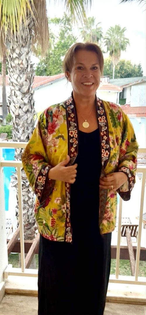 Kimonoen er i 100% silke med vakre broderier. Den er vendbar med to unike mønstre. Denne kimonoen er designet med åpen front og nedhengte skuldre, og har stikklommer, dristig broderi og kontrasterende kant.
