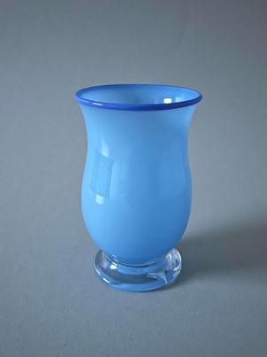 Melkeglass – lyseblå med mørkeblå kant.