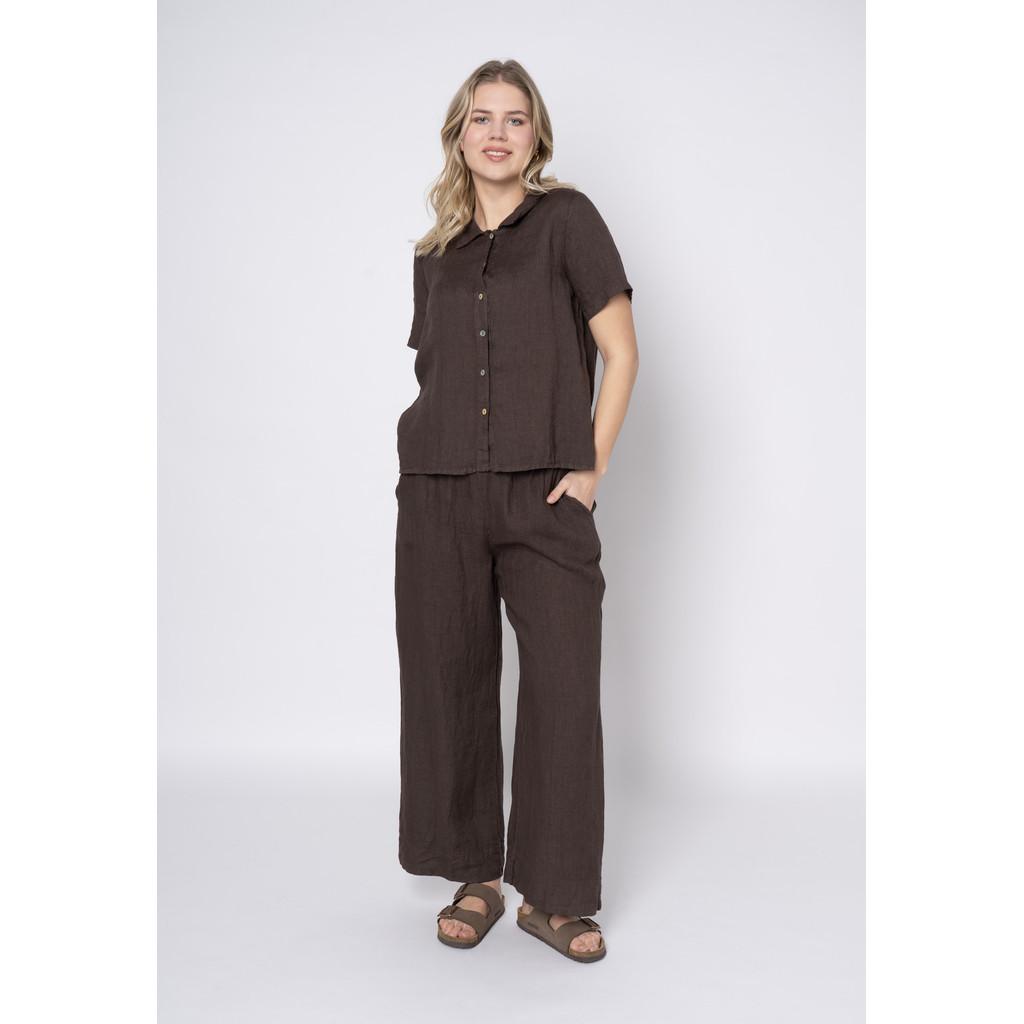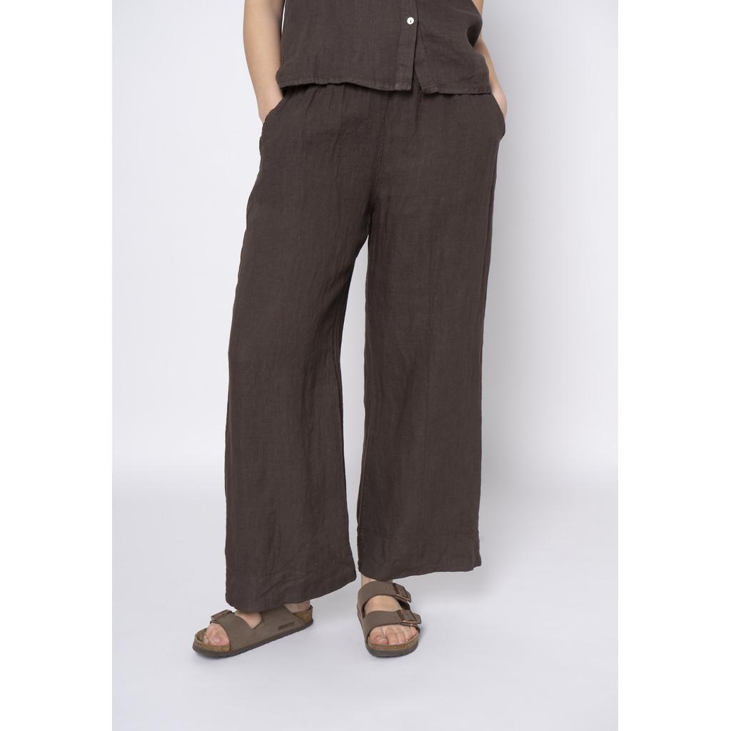 Legg til en følelse av avslappet luksus i garderoben din med disse linbuksene fra Lind. Den høye midjen og løstsittende ben skaper en flatterende silhuett, mens de dype lommene gir praktisk funksjonalitet.