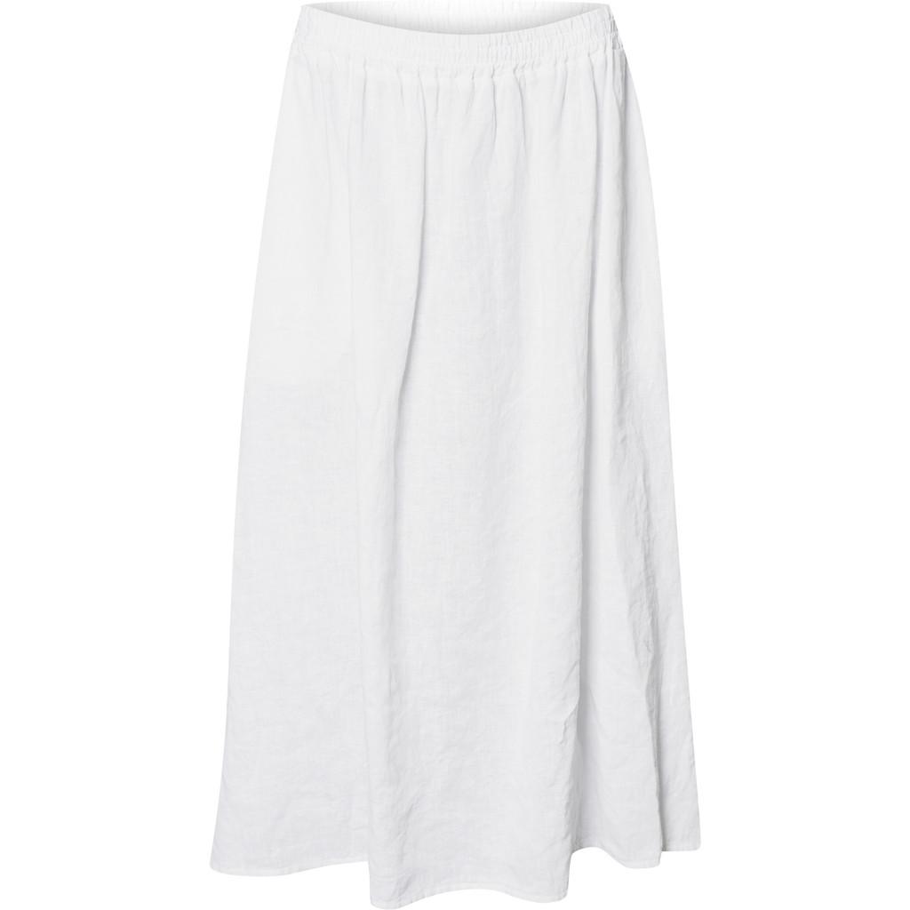 Dette skjørtet fra Lind har et rolig og sofistikert uttrykk med fokus på naturlig komfort. Det er laget i ren lin, som gir en lett og pustende kvalitet med en vakker struktur og et mykt, levende fall. Den klassiske passformen skaper en elegant silhuett, mens det enkle designet gjør modellen allsidig og lett å kombinere med både bluser, skjorter og strikk. Det er et stilrent skjørt som passer perfekt til både avslappede sommerdager og mer gjennomførte antrekk.