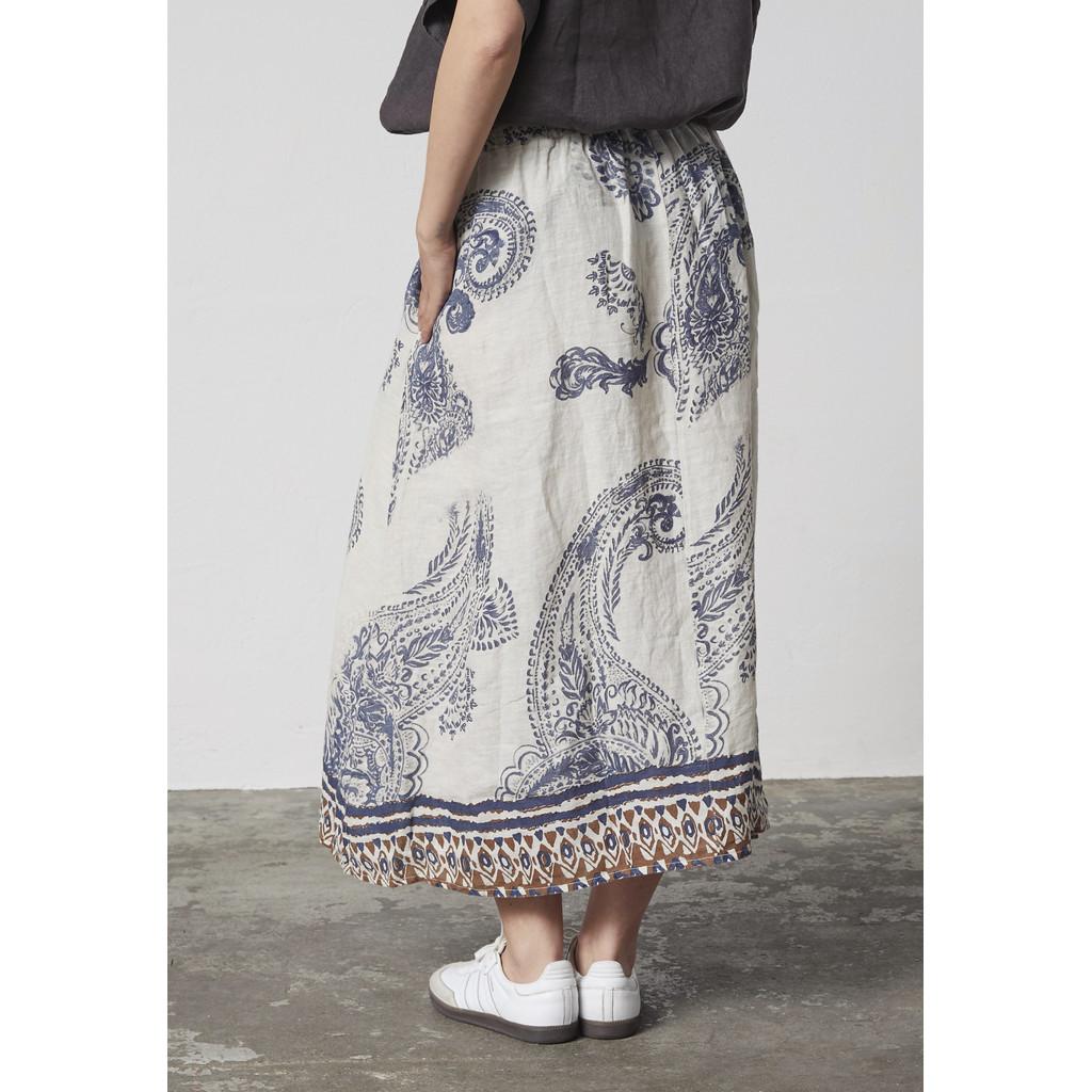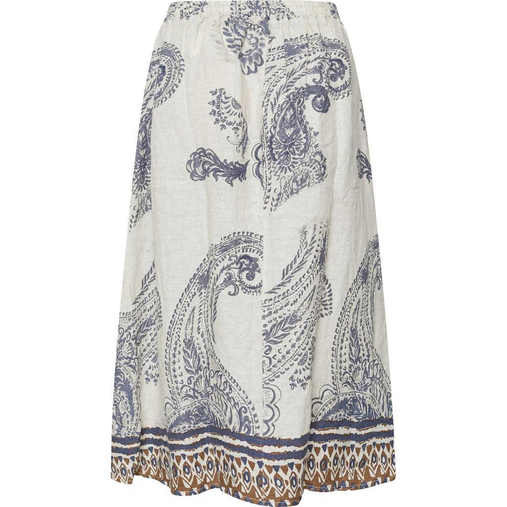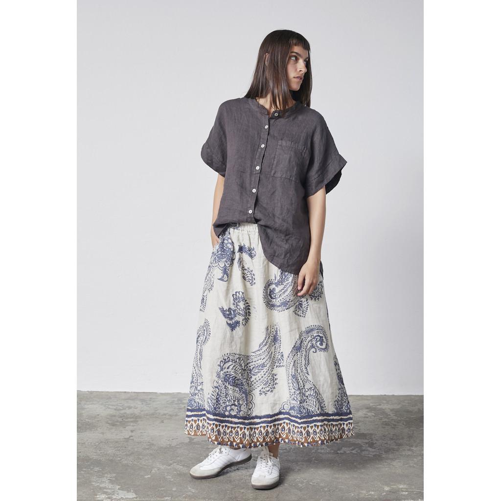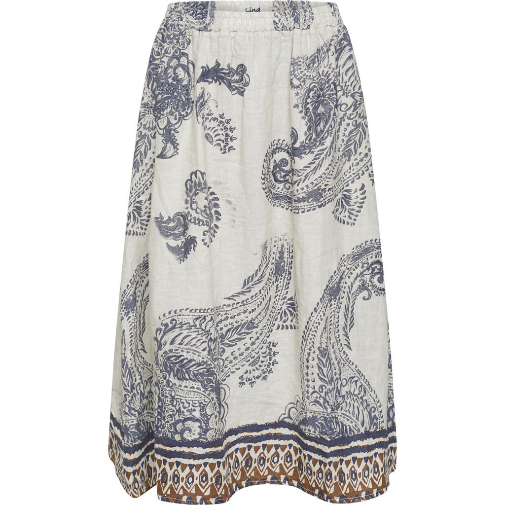 Dette skjørtet fra Lind har et luftig og kunstnerisk utseende med en naturlig følelse av eleganse. Laget av ren lin, tilbyr det en lett og pustende kvalitet med en vakker drapering og en livlig tekstur.