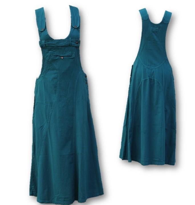 Enkel og tøff selekjole i kraftig vevd bomull med lommer i siden. Justerbare skulderreimer, lomme på brystet og knepping i siden. Et røfft belte er sydd på fronten over en lomme, og alle knappene på kjolen er laget av kokos. Kjolen er sydd med kraftige dobbeltsømmer i slitesterk bomull i kraftig kvalitet.