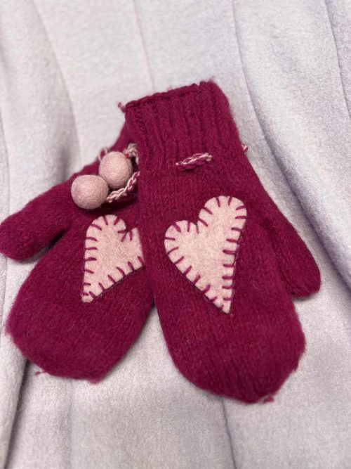 Vottene er dekorert med et filthjerte som er brodert på med kantsting.