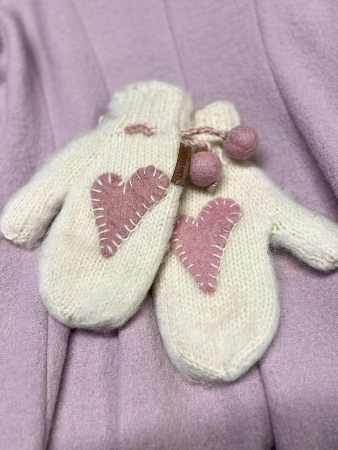 Lovely Planet ullvotter med hjerte – creme med rosa