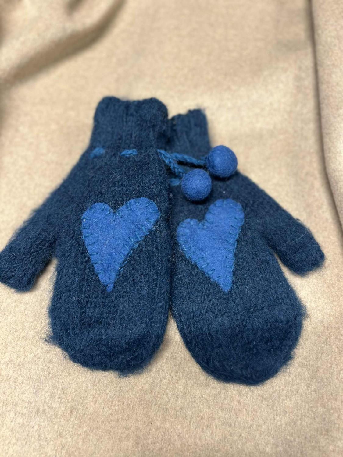 Vottene er dekorert med et filthjerte som er brodert på med kantsting.