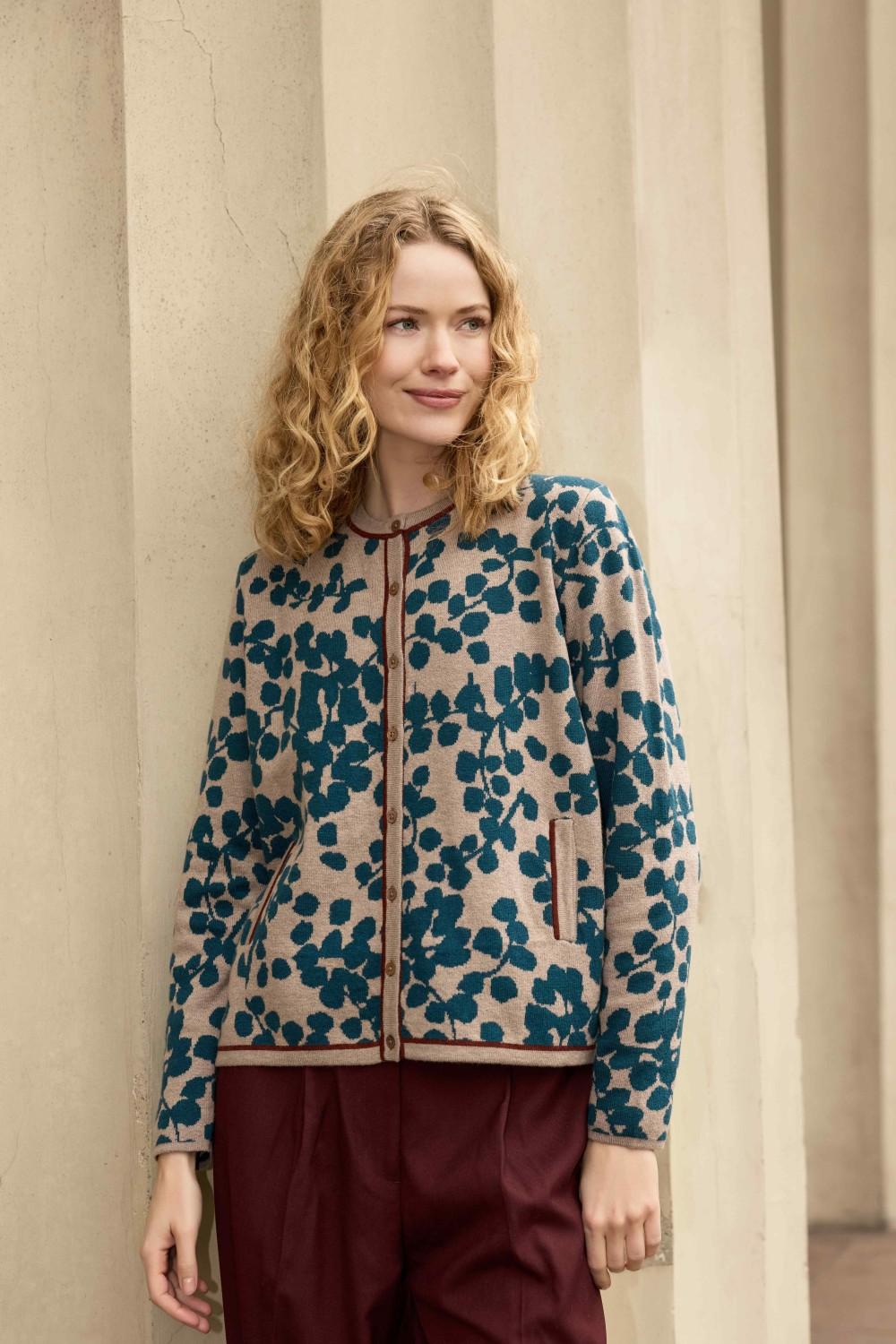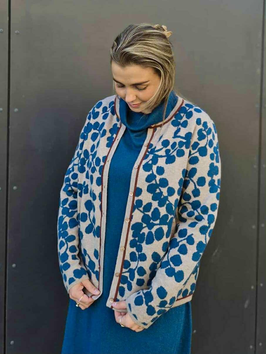 Dobbeltstrikket med vakkert bladmønster. Nydelige kontrastfarger og lommer.
