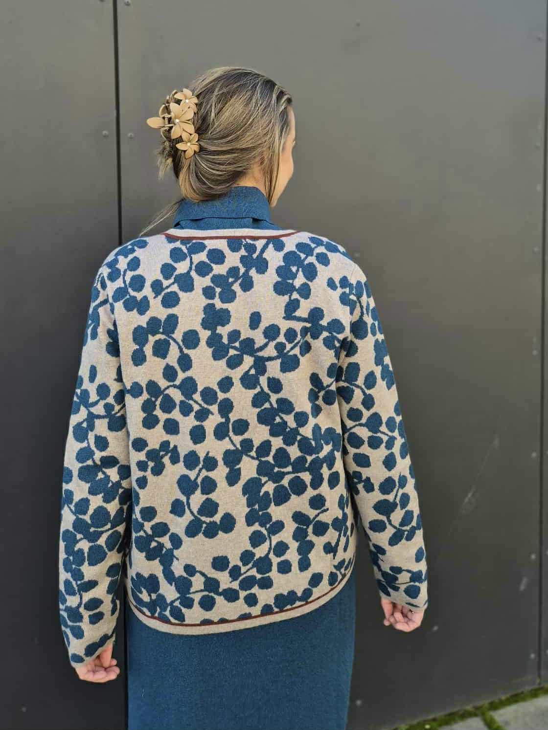 Dobbeltstrikket med vakkert bladmønster. Nydelige kontrastfarger og lommer.