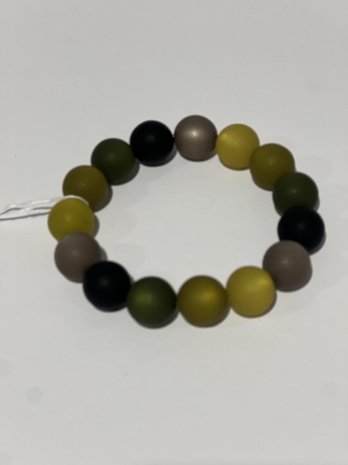 Lekkert armbånd fra danske MARIE. Armbåndene er håndlaget av fargede kuler i harpiks. De kommer i et hav av farger som spriter opp et hvert antrekk.