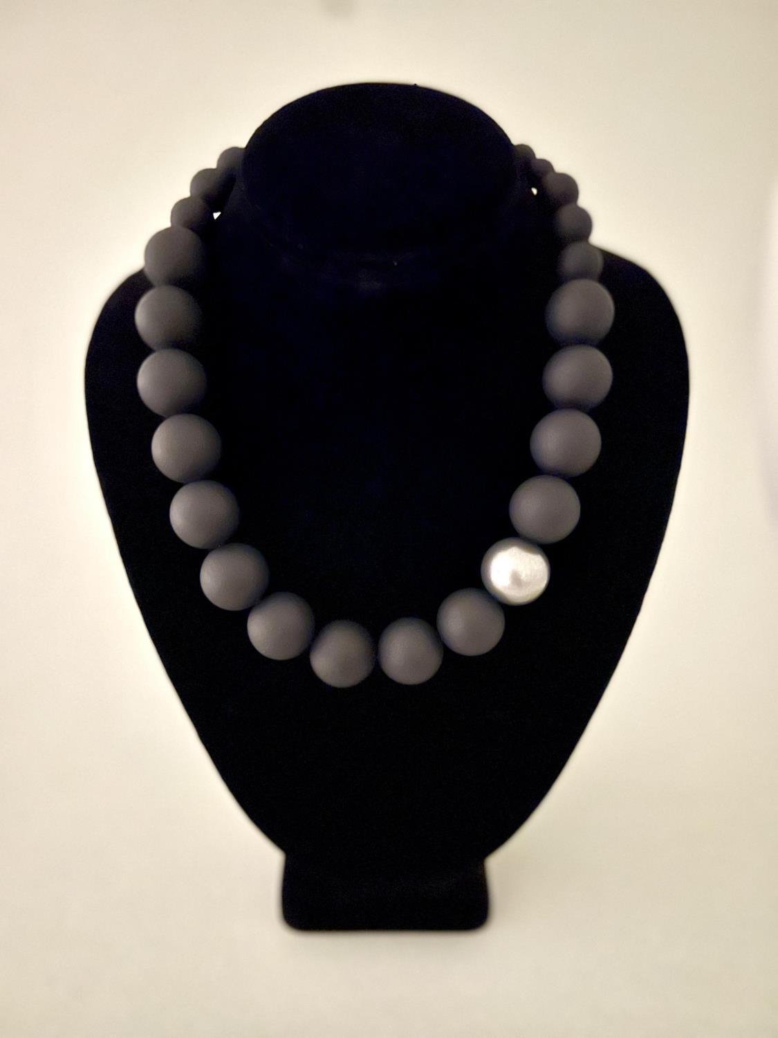 Lekkert smykke fra danske MARIE. Smykkene er håndlaget av fargede kuler i harpiks. Smykkene kommer i et hav av farger og spriter opp et hvert antrekk. Smykket er 43 cm og har en justerbar lås m/lenke på 6 cm. Nikkelfri