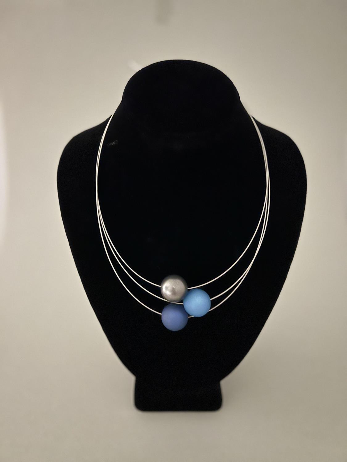 Lekkert smykke fra danske MARIE. Smykkene er håndlaget av fargede kuler i harpiks. Smykkene kommer i et hav av farger og spriter opp et hvert antrekk. Smykket er 43 cm (minste ring) og har en justerbar lås m/lenke på 6 cm. Nikkelfri