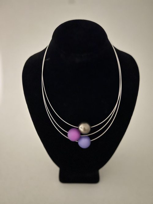 Lekkert smykke fra danske MARIE. Smykkene er håndlaget av fargede kuler i harpiks. Smykkene kommer i et hav av farger og spriter opp et hvert antrekk. Smykket er 43 cm (minste ring) og har en justerbar lås m/lenke på 6 cm. Nikkelfri