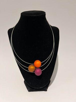 Lekkert smykke fra danske MARIE. Smykkene er håndlaget av fargede kuler i harpix. Smykkene kommer i et hav av farger og spriter opp et hvert antrekk. Smykket er 43 cm og har en justerbar lås m/lenke på 6 cm. Nikkelfri.