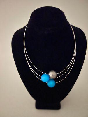 Lekkert smykke fra danske MARIE. Smykkene er håndlaget av fargede kuler i harpiks. Smykkene kommer i et hav av farger og spriter opp et hvert antrekk. Smykket er 43 cm (minste ring) og har en justerbar lås m/lenke på 6 cm. Nikkelfri