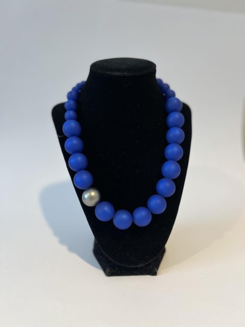 Lekkert smykke fra danske MARIE. Smykkene er håndlaget av fargede kuler i harpiks. Smykkene kommer i et hav av farger og spriter opp et hvert antrekk. Smykket er 43 cm og har en justerbar lås m/lenke på 6 cm. Nikkelfri