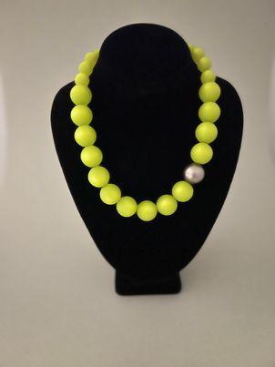 Lekkert smykke fra danske MARIE. Smykkene er håndlaget av fargede kuler i harpiks. Smykkene kommer i et hav av farger og spriter opp et hvert antrekk. Smykket er 43 cm og har en justerbar lås m/lenke på 6 cm. Nikkelfri