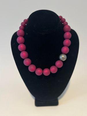 Lekkert smykke fra danske MARIE. Smykkene er håndlaget av fargede kuler i harpiks. Smykkene kommer i et hav av farger og spriter opp et hvert antrekk. Smykket er 43 cm og har en justerbar lås m/lenke på 6 cm. Nikkelfri
