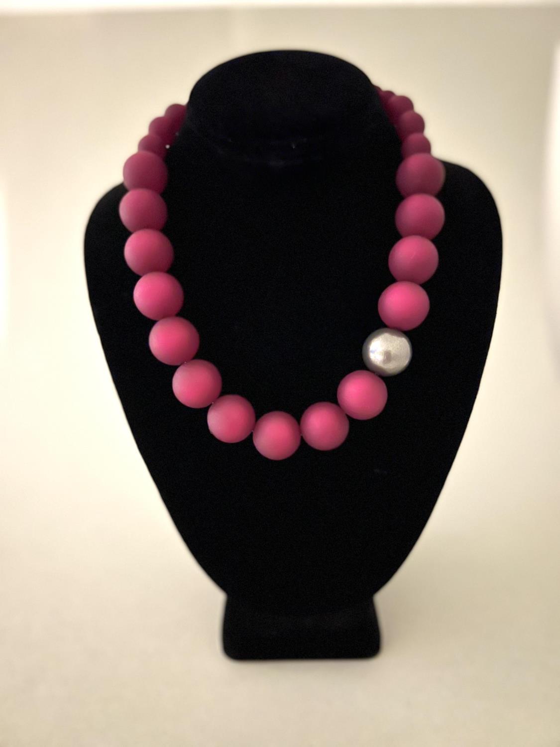 Lekkert smykke fra danske MARIE. Smykkene er håndlaget av fargede kuler i harpiks. Smykkene kommer i et hav av farger og spriter opp et hvert antrekk. Smykket er 43 cm og har en justerbar lås m/lenke på 6 cm. Nikkelfri