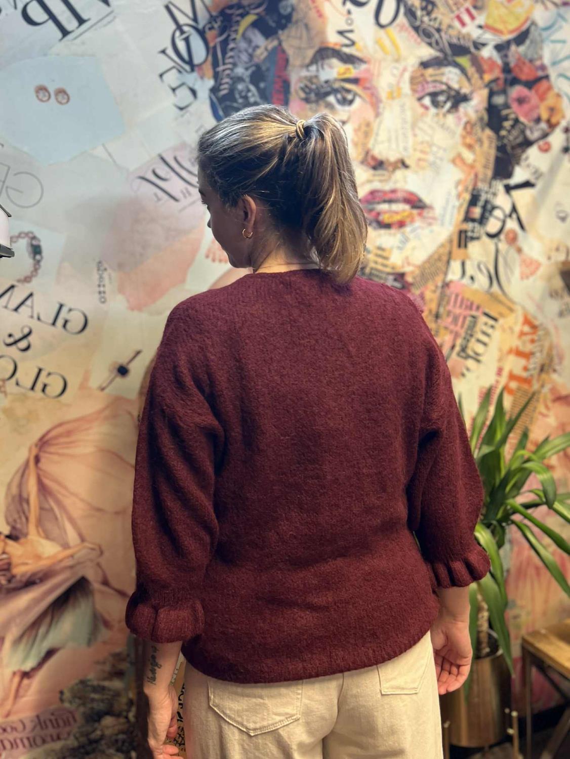 Nydelig cardigan fra Marta du Chateau i en myk og deilig alpakkablanding. 3/4 ermer med vakker rynkekant nederst.