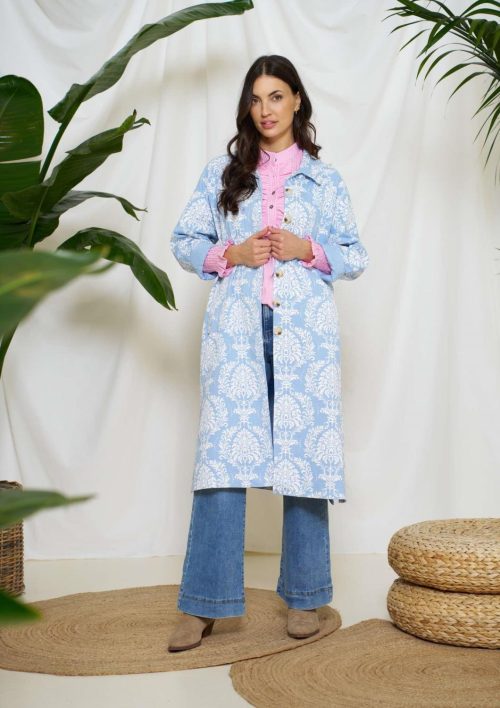 Tøff lang frakk fra Marta Du Château. Jakken har en åpen krave, og dens unike print kan piffe opp ethvert antrekk. Bruk den både til jeans, leggings og kjoler – mulighetene er mange.