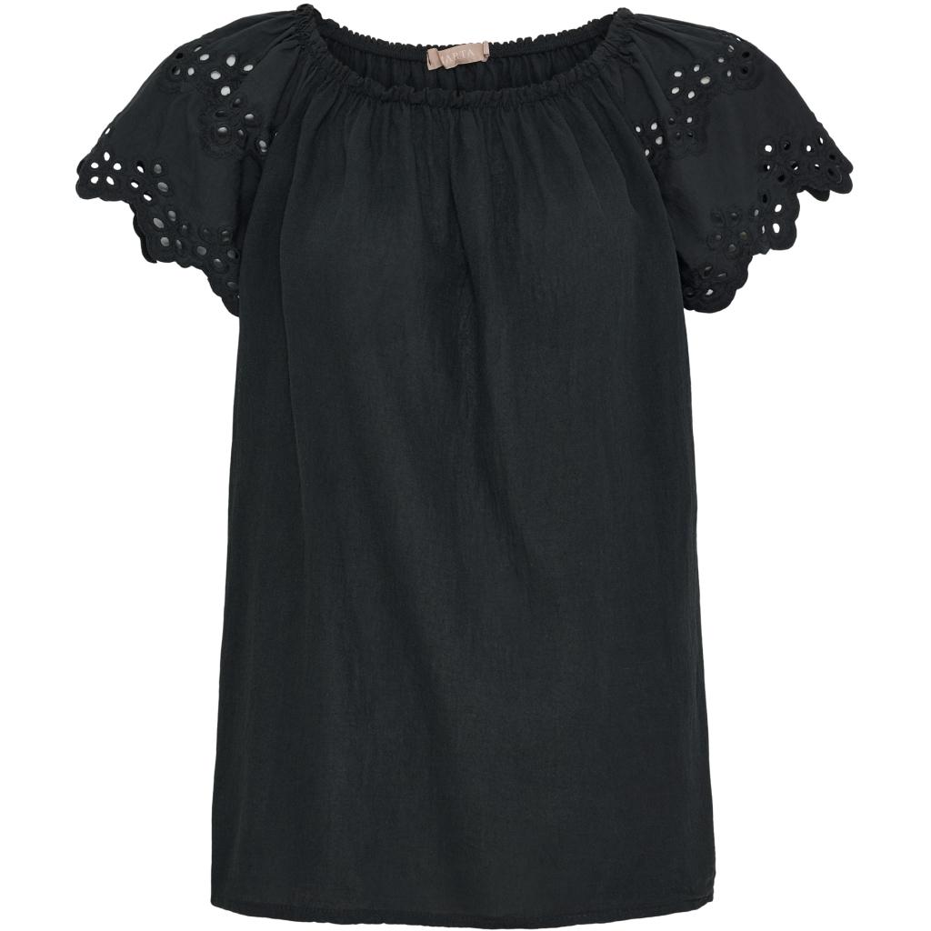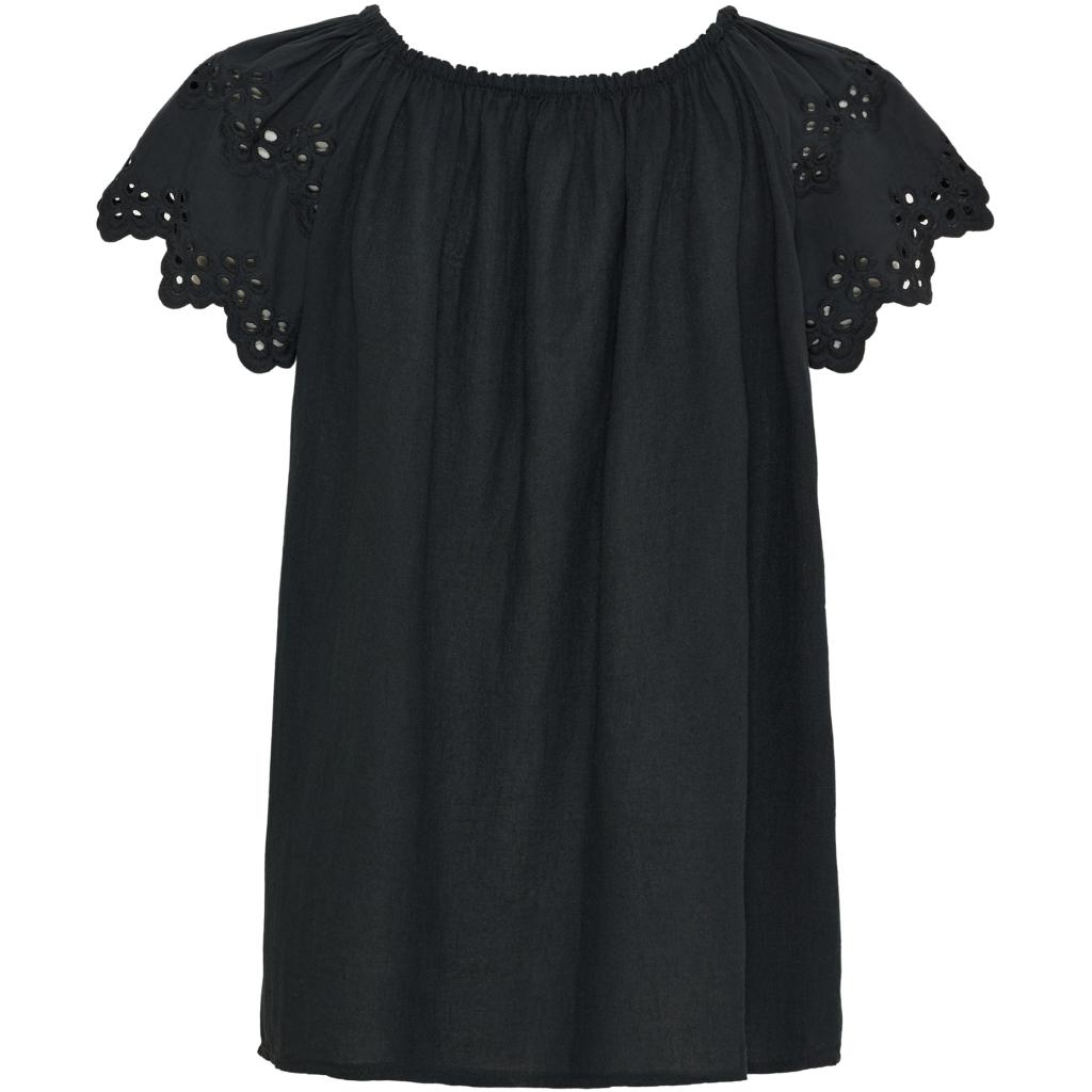 Nydelig sort topp fra Marta du Chateau. Strikk i halsen og korte ermer med engelsk blonde.