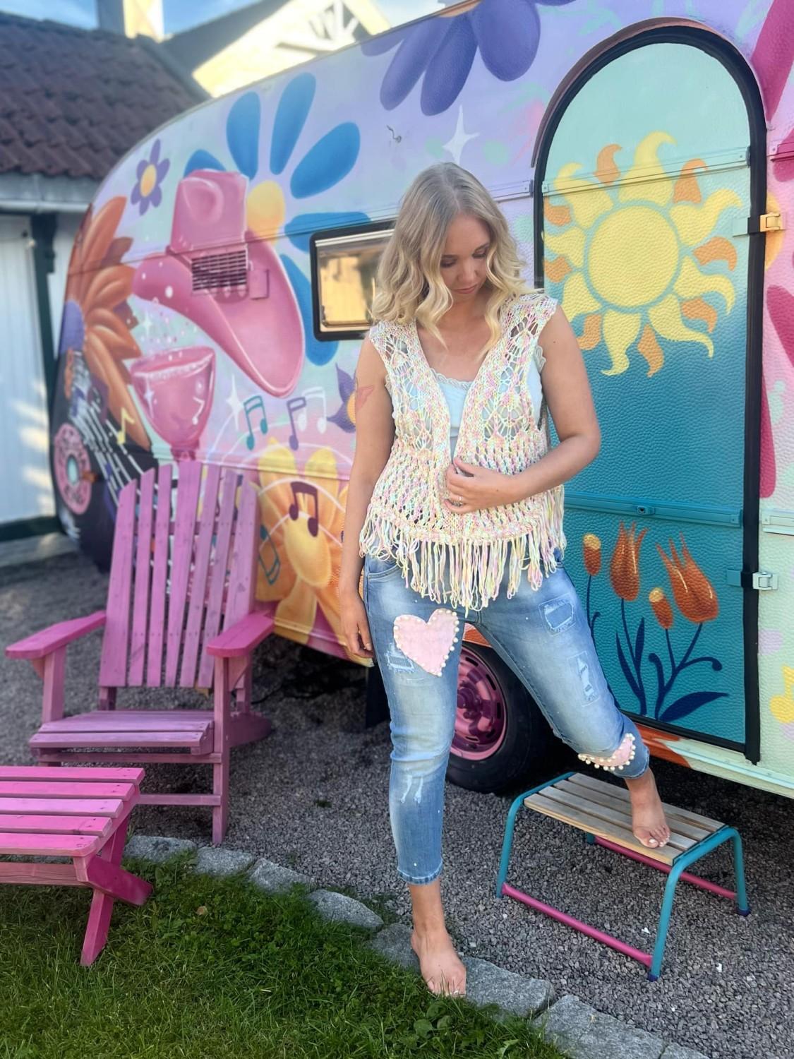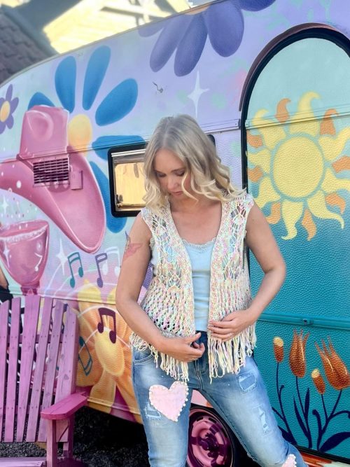 Den kuleste vesten med frynser fra marta du Chateau! Nydelige pastell-farger med festival-wibes!