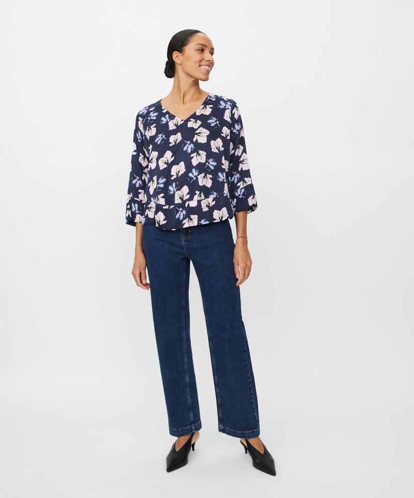 Hvis du elsker blomstermønster like mye som oss, er denne blusen i silkemyk viskose akkurat noe for deg. Det lette materialet har en diskret struktur som gir et elegant spill og et snev av kant.