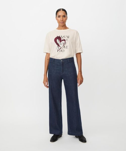 Man kan aldri få for mye glitter – og disse jeansene har akkurat den rette subtile touchen til å lyse opp i de mørke tidene. Buksene har en avslappet passform med dekorative lommer foran og en lett bootcut som gir en flatterende 70-tallsinspirert look. De er laget i myk og komfortabel denim med mye stretch og vidde i bena, noe som sikrer både komfort og stil.