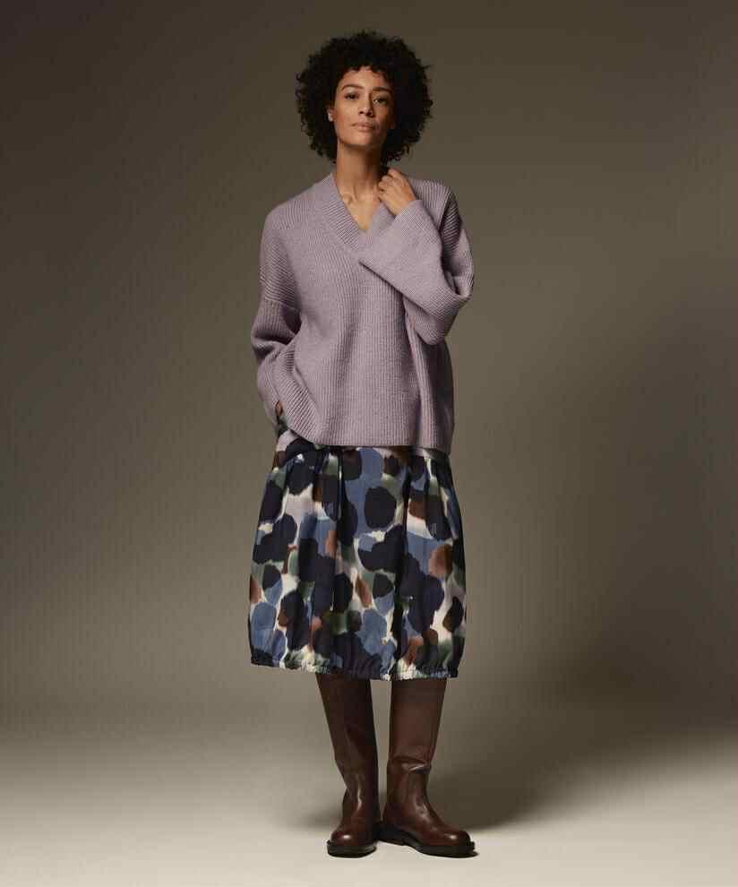 En myk og vakkert strikket topp som tilfører både varme og femininitet til looken din. Toppen er designet med V-hals, lange ermer med ekstra vidde og et avslappet, oversized snitt som gir godt volum og bevegelsesfrihet. Bruk den over en mønstret kjole, med et skjørt eller med et par klassiske jeans – den blir raskt en favoritt hele sesongen.