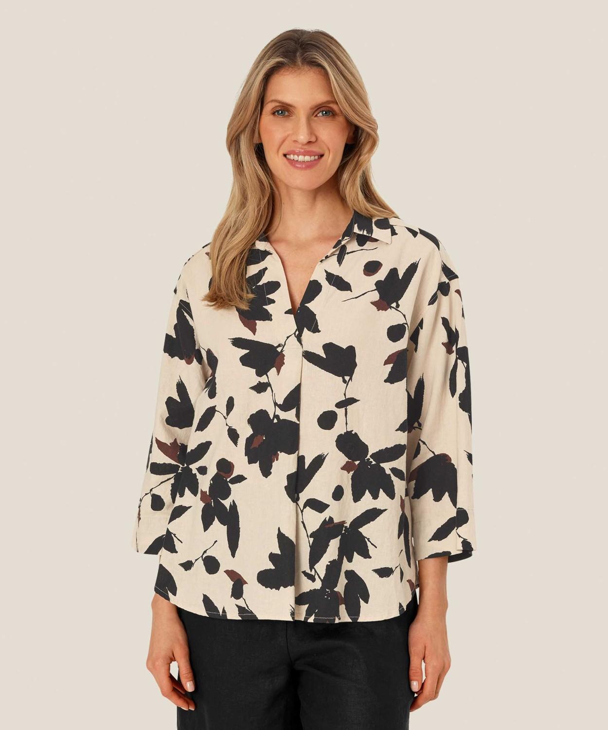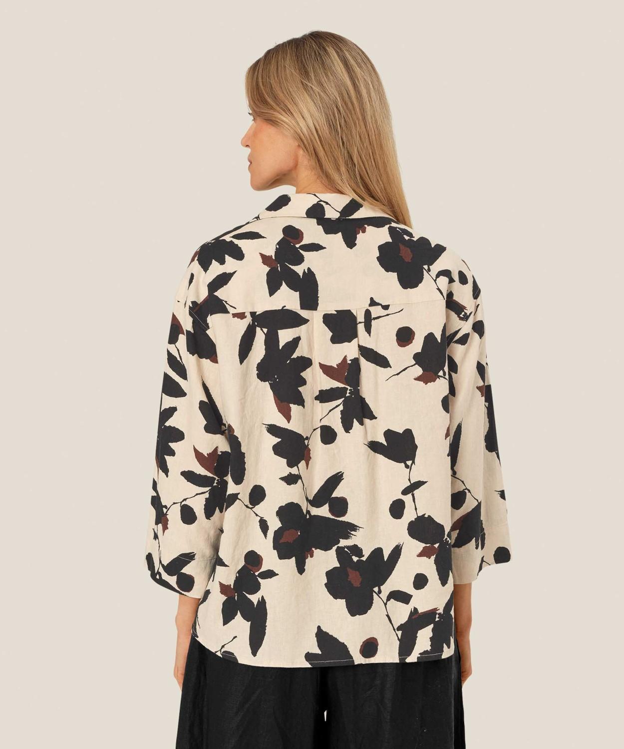 Denne toppen er kjærlighet ved første øyekast. Det forlokkende blomstertrykket utstråler enkel eleganse, mens den myke blandingen av viskose og lin gjør den utrolig behagelig å ha på. En topp du kommer til å bruke om og om igjen. Style den med klassiske svarte bukser, shorts eller dine favorittjeans for en feminin og luksuriøs look.