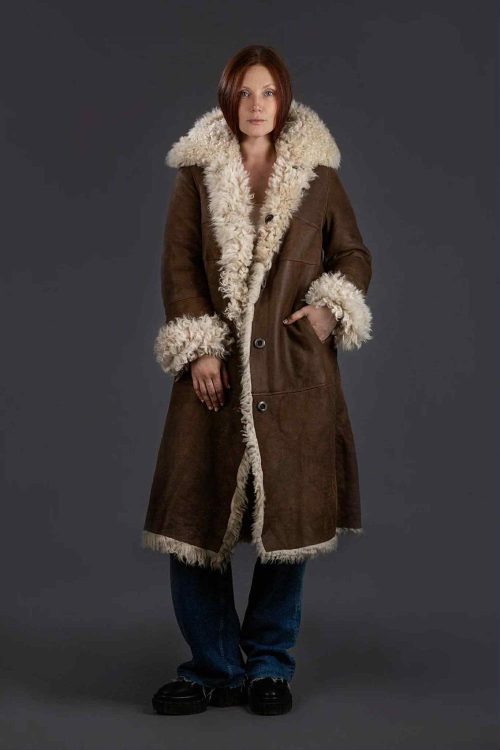 En fantastisk vakker vendbar lamme-skinnskåpe som også kan brukes med pelsen ut. Vendbare lommer i siden og skjulte trykknapper.