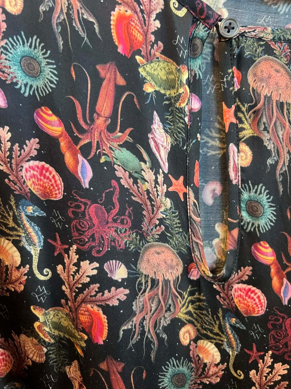 Kunstneren og designeren Michala Wiesneck designer selv sine egne tekstiler, så her får man virkelig noe unikt! Her har hun designet et mønster med inspirasjon fra havet.