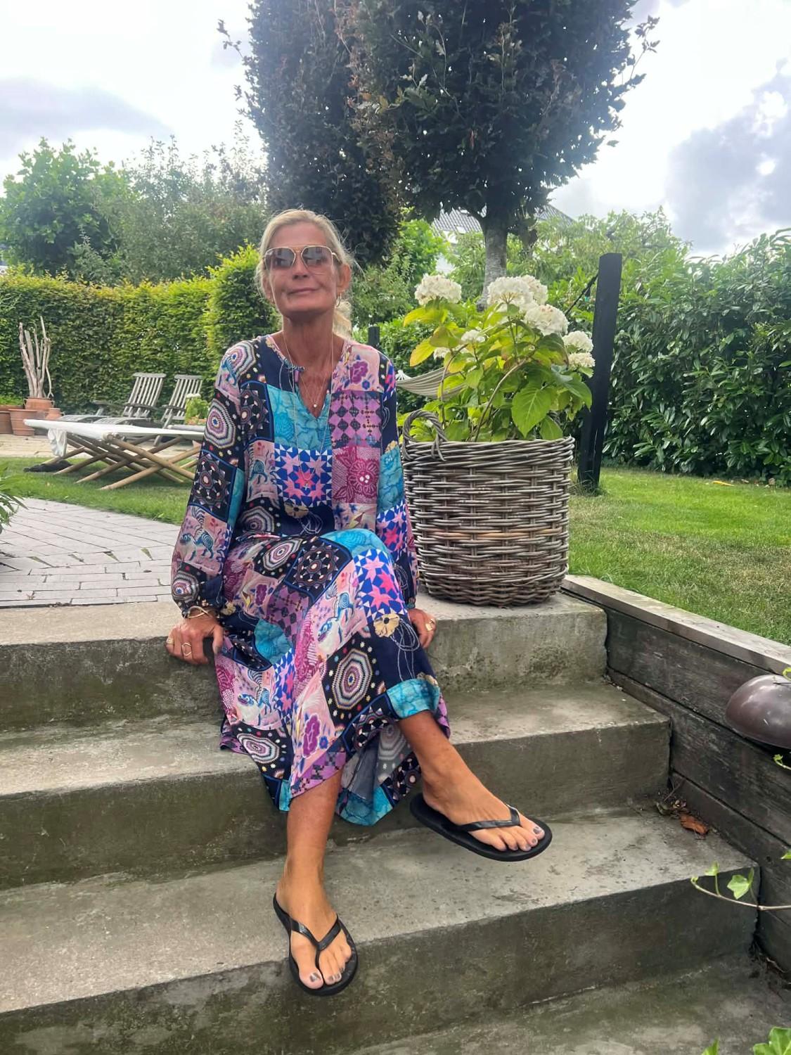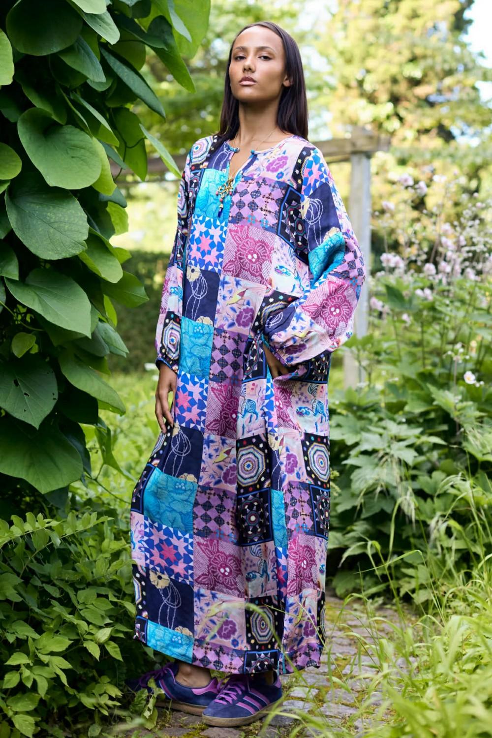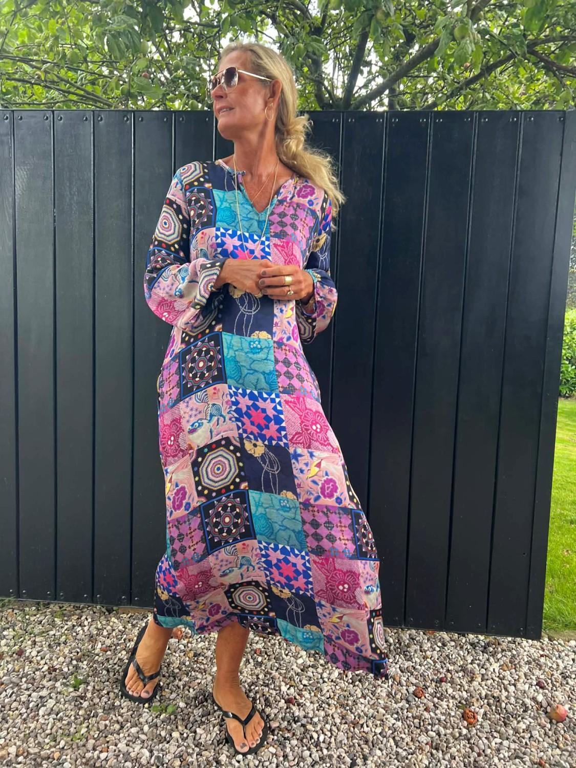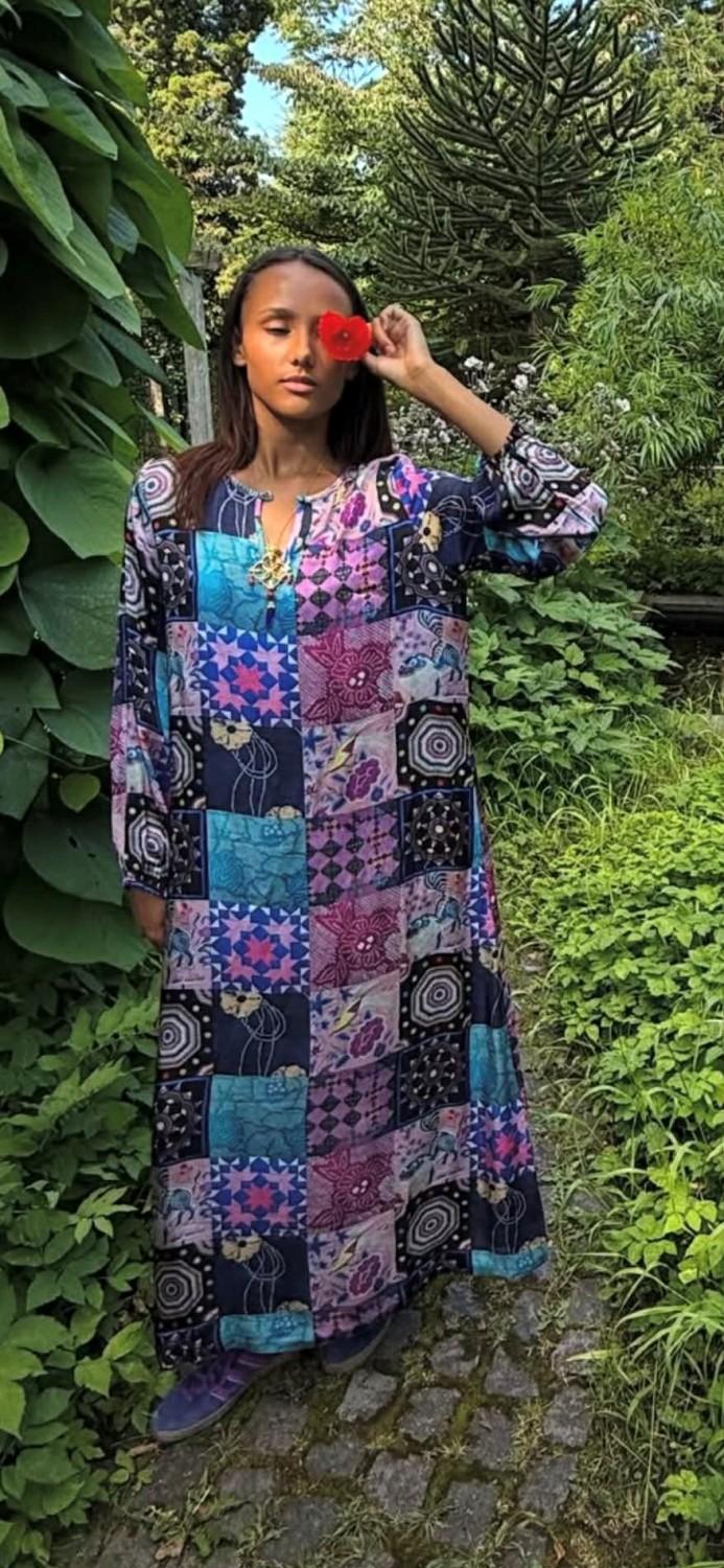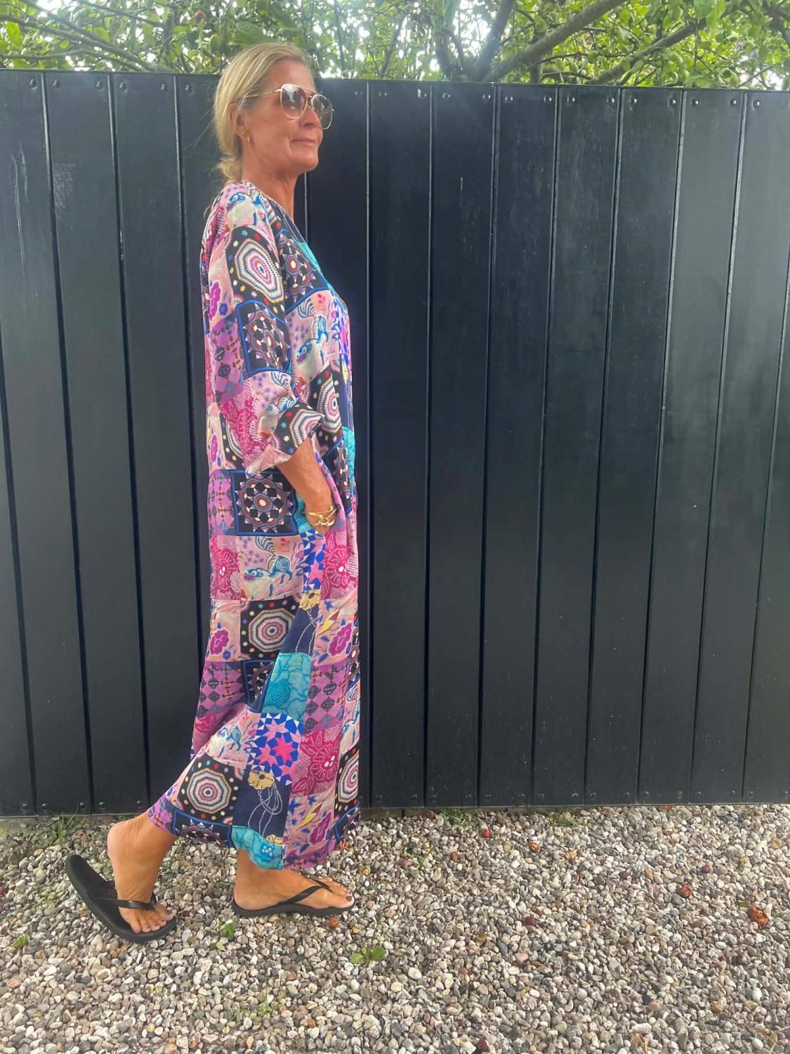 Denne maxikjolen er en utrolig lekker kjole i de vakreste farger og mønster.