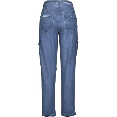 Buksene har en avslappet og funksjonell design med romslige cargolommer på sidene og distinkte kontrastlommer foran. De rette bena og det myke, vaskede materialet gir et avslappet uttrykk, mens sømmer og detaljer skaper et moderne preg. På baksiden har buksene klassiske baklommer med klaffer.