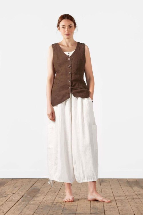 Lin-råvaren har vokst, blitt spunnet til garn, vevd og farget i Europa, og plaggene er deretter også sydd i Europa.